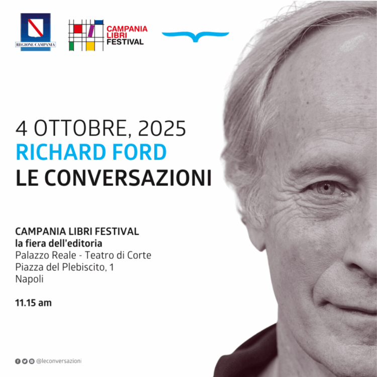 Sabato 4 ottobre nell’ambito di Campania Libri Festival al Palazzo Reale di Napoli sarà protagonista d’eccezione, in dialogo con Antonio Monda, lo scrittore americano Richard Ford, autore di romanzi e racconti tradotti in tutto il mondo, vincitore sia del Pulitzer Prize che del PEN/Faulkner Award (ingresso libero fino a esaurimento posti info su campanialibrifestival.it).