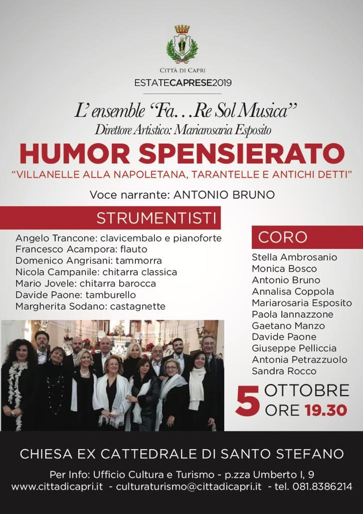 Nell’ambito del programma dell’Estate Caprese, questa sera alle ore 19.30 nella ex cattedrale di Santo Stefano appuntamento con l’ensamble “Fa… Re Sol Musica” in concerto.