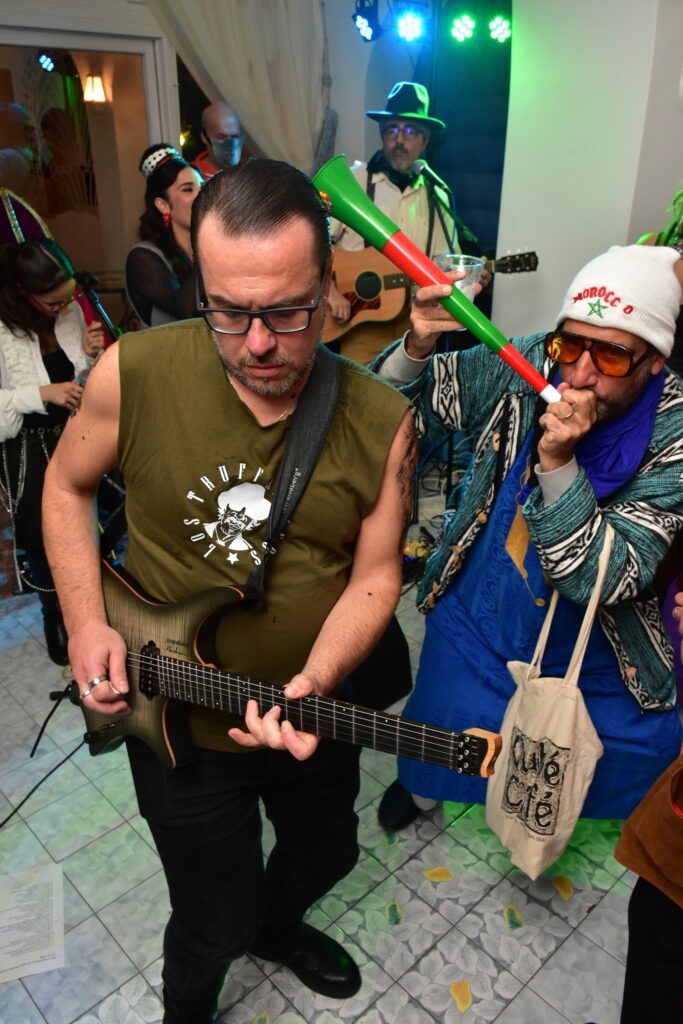 L’atmosfera ha vissuto una metamorfosi magnetica. L’inizio, sospeso tra le suggestioni del Grande Gatsby e le estetiche de La Grande Bellezza, è stato cullato dalle note raffinate di un pianoforte. Il ritmo è poi esploso con l’energia dei Truffaldinos — anch’essi rigorosamente in maschera, tra batteristi in abiti cardinalizi e chitarristi in bilico tra il rock rumeno e il folklore tirolese — per poi culminare nel trascinante DJ set firmato da Jerry Cinquegrana, aka Tali Freaks.