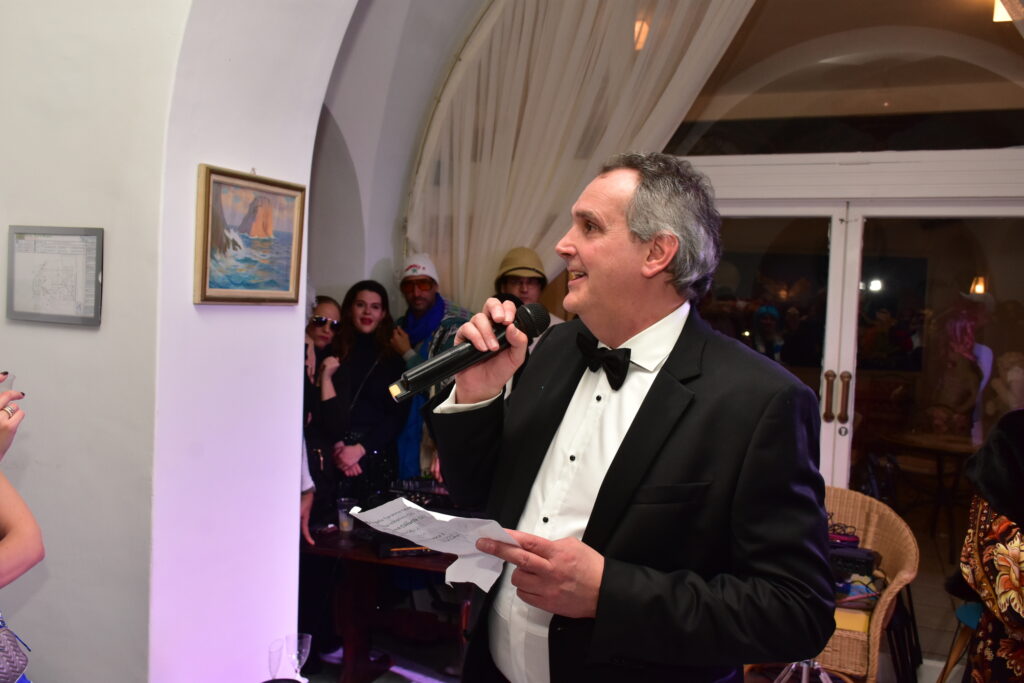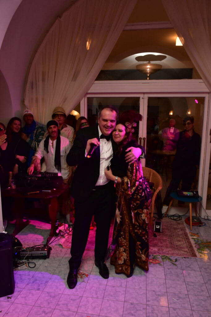 Il tema della serata ha rotto gli schemi del classico party: un ballo in maschera dove ogni ospite è diventato la proiezione di un’idea del festeggiato. Andrea ha infatti “cucito addosso” a ogni invitato un’identità specifica, assegnando personaggi nati direttamente dalla sua fantasia. Il risultato? Un mosaico umano surreale che ha visto la partecipazione dell’intera comunità isolana, insieme a numerosi amici accorsi da ogni parte d’Italia e dall’estero per onorare il bizzarro dress code.