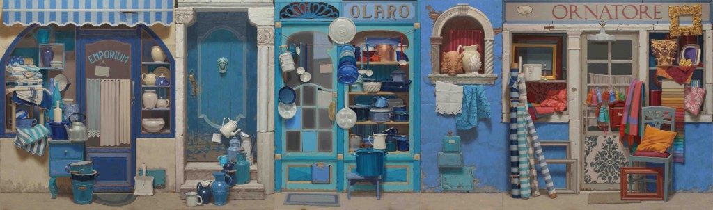 Liquid Art System inaugura questo sabato la stagione estiva caprese di mostre temporanee con ” Botteghelle Street”, l’installazione pittorica di Paolo Quaresima . Cinque tavole che vanno a formare una composizione scenografica di oltre 6 metri di lunghezza: oggetti di uso comune e botteghe dal sapore antico, come l’olaro, l’ornatore , l’emporio, ritratti in modo sorprendentemente fedele.
