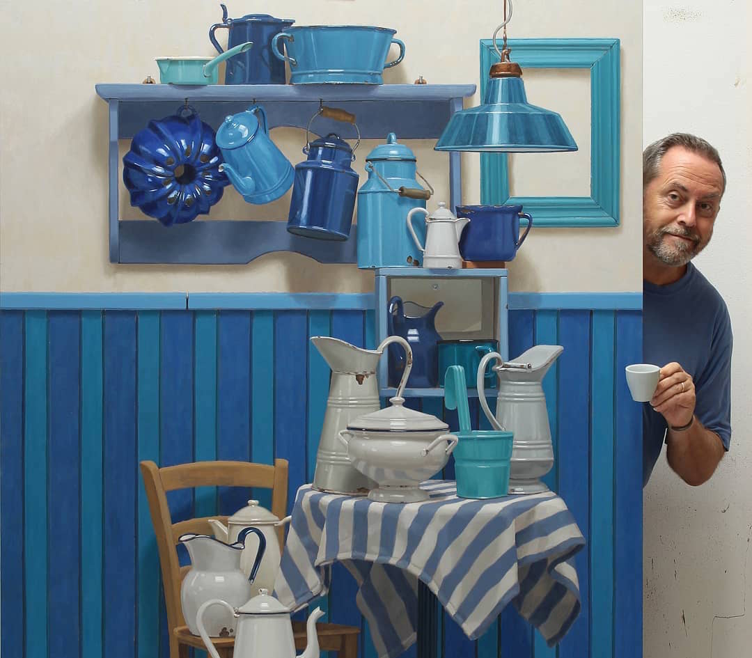 Soprannominato “il pittore delle piccole cose” l’artista, nato a Merano, prima dispone armoniosamente gli elementi per forma e colore, creando dunque una vera e propria “mise-en-scène” che restituisce certosinamente in pittura: “Dipingo con una tecnica realista, ma sono distante dalla visione realista dell’arte. Ritraggo silenzi sospesi. Amo astrarre dal tempo, con un atteggiamento mai nostalgico, ma che vuole narrare un continuo presente. Mi definisco un pittore, più che un artista. Ricordo all’accademia a Venezia un professore ci disse: l’arte è mistero, la pittura un mestiere.”