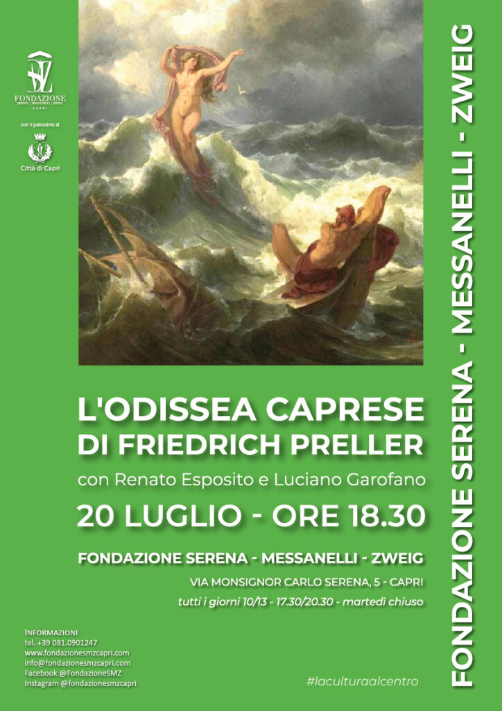 Domenica 20 Luglio ore 18.30 presso la sede della Fondazione Serena Messanelli Zweig, si terrà la conferenza “L’Odissea caprese di Friedrich Preller” a cura di Renato Esposito e Luciano Garofano.