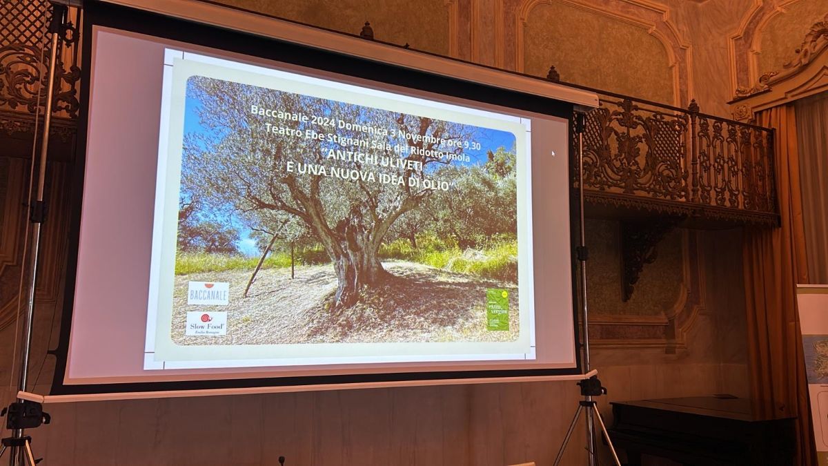 Domenica 3 Novembre presso il Teatro Ebe Stignani Sala del Ridotto, all’interno della rassegna “Baccanale” di Imola, si è tenuto il convegno “Antichi uliveti e una nuova idea di olio”.