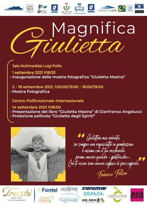 Si terrà oggi, alle ore 18,30, l’ inaugurazione della retrospettiva sulla figura artistica di Giulietta Masina della quale ricorre il centenario dalla nascita. La mostra, 42 fotografie fornite dall’ Archivio Fotografico della Cineteca Nazionale del Centro Sperimentale di Cinematografia, sarà visitabile tutti i giorni fino al 18 settembre dalle ore 10 alle 13 e dalle ore 16 alle 19 nella Sala Multimediale Luigi Pollio del Centro Polifunzionale Interazionale di via Sella Orta. La retrospettiva intitolata “Magnifica Giulietta” rientra negli eventi collaterali del Capri Movie International Film Festival, organizzato dall’ associazione culturale Capreae Sirenum Tellus, nella persona della dottoressa Francesca Girone, e Polis 3.0 presieduta da Bruno Flavio, affiancato dalla professoressa Manuela Schiano, che rappresenta quest’ anno il valore aggiunto alle iniziative di spessore culturale, grazie ad un accordo di partenariato tra le due associazioni, di cui Polis 3.0 è capofila. La retrospettiva gode del patrocinio e della collaborazione istituzionale della Città di Capri, della Regione Campania, dell’ Agenzia Regionale Campania del Turismo, di Marina di Capri, della Federalberghi Adac Isola di Capri e delle associazioni di categoria Capri Excellence ed Ascom Capri Confcommercio. Per il solo evento cinematografico gode inoltre del supporto anche economico del piano cinema della Regione Campania, del Forum dei Giovani del Comune di Capri e del Forum dei Giovani del Comune di Anacapri, del Comune di Procida e del Procida Film Festival. Le fotografie esposte ripercorrono i tratti salienti della carriera cinematografica di Giulietta Masina, con scatti di scene del film “Luci del varietà” di Federico Fellini e Alberto Lattuada del 1950 con Peppino De Filippo, passando per “Non Stuzzicare la Zanzara” di Lina Wertmuller del 1967 con Rita Pavone, fino all’ esposizione di ritratti dell’ attrice che portano le firme dei fotografi Angelo Frontoni e Osvaldo Cipriani. All’ inaugurazione interverrà il sindaco di Capri Marino Lembo, che ha tenuto a sottolineare che anche quest’ anno le due associazioni culturali capresi, Capreae Sirenum Tellus e Polis 3.0, sono riuscite non solo ad offrire ai turisti ed isolani un evento culturale di spessore ma anche un elemento importante sul fronte turistico che è divenuto un attrattore. Il sindaco inaugurerà l’ evento con l’ architetto Antonella Felicioni, curatrice della mostra “Magnifica Giulietta”, le cui foto provengono dall’ Archivio Fotografico della Cineteca Nazionale del Centro Sperimentale di Cinematografia che, anche quest’ anno, ha rinnovato la collaborazione con le associazioni culturali capresi. Inoltre, il 14 alle ore 18, al Centro Polifunzionale Internazionale, sarà presentato il libro “Giulietta Masina” di Gianfranco Angelucci edito da Edizioni Sabinae e CSC; a concludere la proiezione della pellicola restaurata del film “Giulietta degli Spiriti”. I sostenitori del Capri Movie International Film Festival sono molteplici: la Regione Campania con il Piano Cinema; Trucchi, il prestigioso brand di orologeria di lusso del dottor Giovanni Restivo che ha fortificato il suo personale rapporto con Capri; Fontel, la principiale alternativa energetica dell’ isola di Capri, in partnership con la Capri Green di Marianna Esposito che annovera le più prestigiose attività turistico-ricettive tra i suoi clienti, forte anche del legame del sempre caprese Gabriele Fonzone; Co.di.me., azienda leader nella sicurezza negli ambienti di lavoro, attraverso Duty Health, atterrato negli aeroporti campani con l’ imprenditore e campione di motonautica Giancarlo Cangiano; Oro di Capri, a cui si deve la riscoperta della tradizione della coltivazione dell’ ulivo con la produzione di un olio particolarmente apprezzato in Italia ed all’ estero, frutto delle terre di Anacapri e della sinergia con la filiera agricola isolana, annovera giovani e meno, rappresentando in tal senso un successo generazionale; Caremar, la compagnia marittima che per eccellenza garantisce i collegamenti sull’ isola; Co.fa.ca. e la cooperativa Portuali Capresi; Mafardina, il vino che accompagna il festival e gli eventi collaterali dalla prima edizione. La società tutta caprese Capri Visual di Felice Spinella, a cui le associazioni hanno commissionato l’ attuazione del progetto culturale di Magnifica Giulietta e del Capri Movie International Film Festival. Tutto ciò è stato possibile grazie allo staff che, intorno alle figure delle associazioni, ha lavorato intensamente. Hanno collaborato Alex Walter Emiliano Amitrano, Bartolomeo Spinella, Claudia Torelli, Laura Di Tommaso, Antonino Vitaglione, Paolo Iaccarino, creando un gruppo affiatato che ha dato grandi risultati.