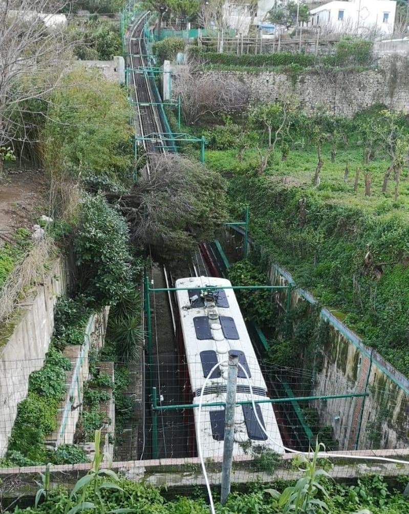 Le forti raffiche di vento che oggi pomeriggio hanno soffiato su Capri, nell’area di Marina Grande e al porto, hanno provocato la rottura di un grosso ramo staccatosi da un albero di alto fusto sulla linea della funicolare. Il tronco è piombato su una delle carrozze all’uscita della galleria di scambio. Fortunatamente nessun danno alle persone, anche grazie al sistema di sicurezza che è entrato in funzione bloccando le vetture. Il personale della funicolare ha provveduto poi a far scendere i passeggeri a Marina Grande, dove è stato attivato il servizio sostitutivo a mezzo autobus per gli utenti rimasti a piedi. “Dopo aver verificato l’entità del danno provocato dall’enorme ramo che ha investito la linea elettrica che fornisce energia alle vetture provocando lo stop dell’erogazione – spiega l’ingegner Santoro, direttore di servizio della Funicolare Sippic – abbiamo allertato i tecnici specializzati che arriveranno dalla terraferma. Il servizio è stato sospeso e resterà fermo per alcuni giorni in attesa delle verifiche dei tecnici”.(ANSA).