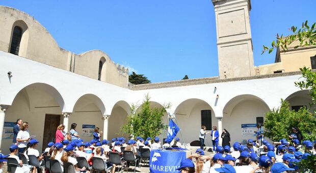 Marevivo consegna i diplomi ai delfini guardiani di Capri nel chiostro della Certosa di San Giacomo. Un’allegra cerimonia con le bandiere blu di Marevivo che sventolavano nel trecentesco chiostro alla presenza della Presidente di Marevivo Rosalba Giugni, del direttore della Certosa Pierfrancesco Talamo. Durante la consegna dei diplomi, alla presenza del Comandante della Capitaneria di Porto Francesco Potenzieri, hanno tracciato il bilancio dell’anno che va a concludersi e dei 15 anni di vita dalla nascita della sezione “i delfini di Marevivo” che iniziarono proprio a Capri e che si estesa poi ad altre 21 isole minori italiane, facendo crescere una generazione sensibile al mantenimento dell’ecosistema ed in particolare al mare. «Un compleanno così importante non poteva che essere celebrato a Capri, alla Certosa di San Giacomo – ha sottolineato il Direttore Talamo – che già ospita la mostra legata alla campagna internazionale di Marevivo “Only One: One Planet, One Ocean, One Health” sui temi della transizione ecologica, inaugurata di recente in occasione dell’incontro del G7>.