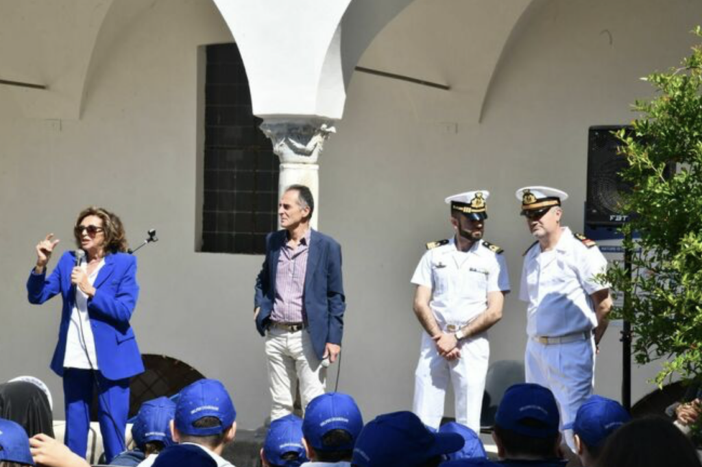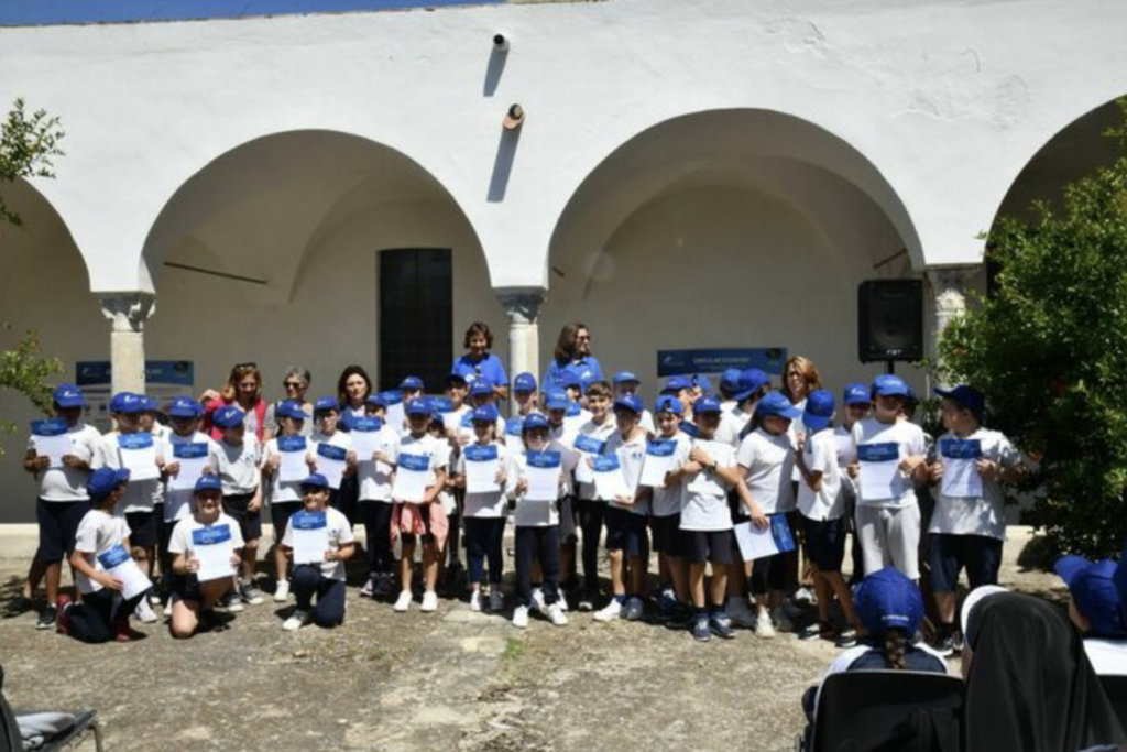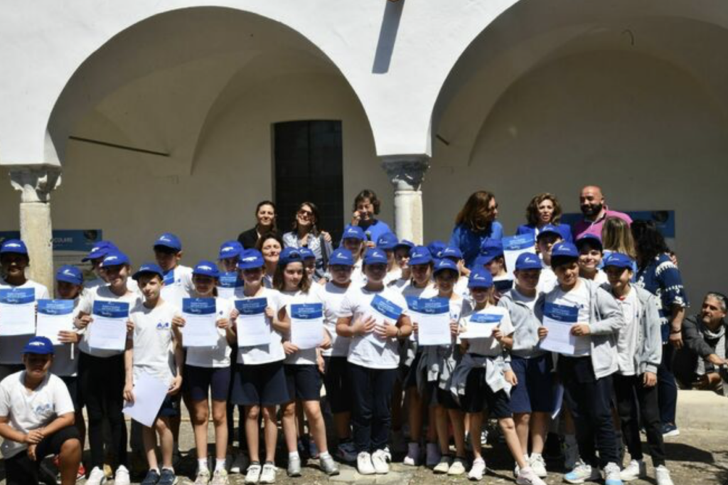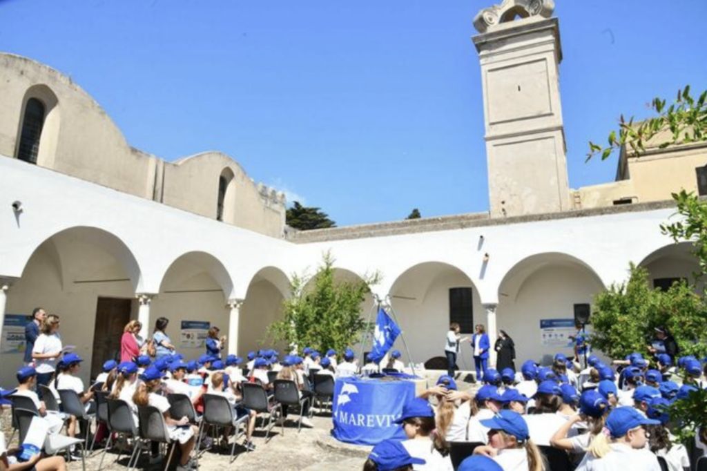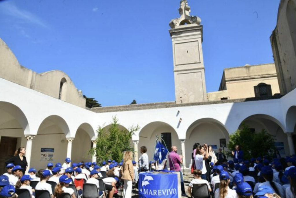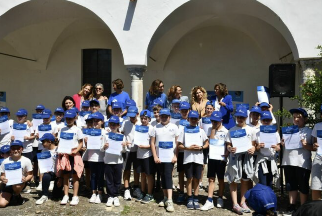 Marevivo consegna i diplomi ai delfini guardiani di Capri nel chiostro della Certosa di San Giacomo. Un’allegra cerimonia con le bandiere blu di Marevivo che sventolavano nel trecentesco chiostro alla presenza della Presidente di Marevivo Rosalba Giugni, del direttore della Certosa Pierfrancesco Talamo. Durante la consegna dei diplomi, alla presenza del Comandante della Capitaneria di Porto Francesco Potenzieri, hanno tracciato il bilancio dell’anno che va a concludersi e dei 15 anni di vita dalla nascita della sezione “i delfini di Marevivo” che iniziarono proprio a Capri e che si estesa poi ad altre 21 isole minori italiane, facendo crescere una generazione sensibile al mantenimento dell’ecosistema ed in particolare al mare. «Un compleanno così importante non poteva che essere celebrato a Capri, alla Certosa di San Giacomo – ha sottolineato il Direttore Talamo – che già ospita la mostra legata alla campagna internazionale di Marevivo “Only One: One Planet, One Ocean, One Health” sui temi della transizione ecologica, inaugurata di recente in occasione dell’incontro del G7>.