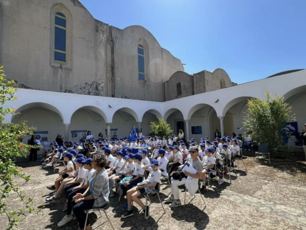 L’evento finale dei Delfini Guardiani che si è svolto oggi nel suggestivo scenario del chiostro piccolo della Certosa e ha visto la partecipazione di circa 200 alunni e alunne dell’Istituto Comprensivo Ippolito Nievo e della Scuola Paritaria Santa Teresa accompagnati dalle Dirigenti Sonia Fucito e Suor Camilla che hanno rivolto un ringraziamento a Marevivo per l’impegno assunto nei confronti dei più piccoli abitanti dell’isola a partire dalla Presidente di Marevivo Rosalba Giugni, Maria Pecorella Delegata Marevivo Capri e Lucia Vitale Responsabile di educazione ambientale con il sottofondo delle musiche di Riccardo Pecoraro. I diplomi ai nuovi delfini di Marevivo Capri sono stati consegnati dalla responsabile Antonia Tafuri Servizio educativo Certosa di San Giacomo l’attestato di “Delfino Guardiano”, diventando così vere e proprie sentinelle del mare e del proprio territorio con il diritto di segnalare al Comune e alla Guardia Costiera eventuali criticità o esempi di buone pratiche».