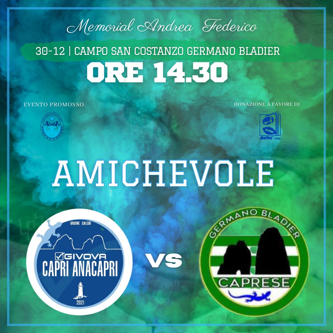 Il 30 dicembre l’Uc Givova Capri Anacapri e la Germano Bladier Caprese si uniranno nel ricordo di Andrea Federico, giovane caprese deceduto in circostanze tragiche sulla spiaggia pubblica di Marina Grande.