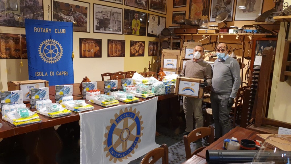 Il Rotary Club di Capri ha donato ai comuni e alle forze dell’Ordine dell’isola una serie di kit di protezione individuali per la protezione dal coronavirus. Non si tratta dell’unico intervento del club caprese in quanto come riporta Il Mattino, il presidente Antonino Moccia è fra i promotori di analoghe iniziative a Napoli.