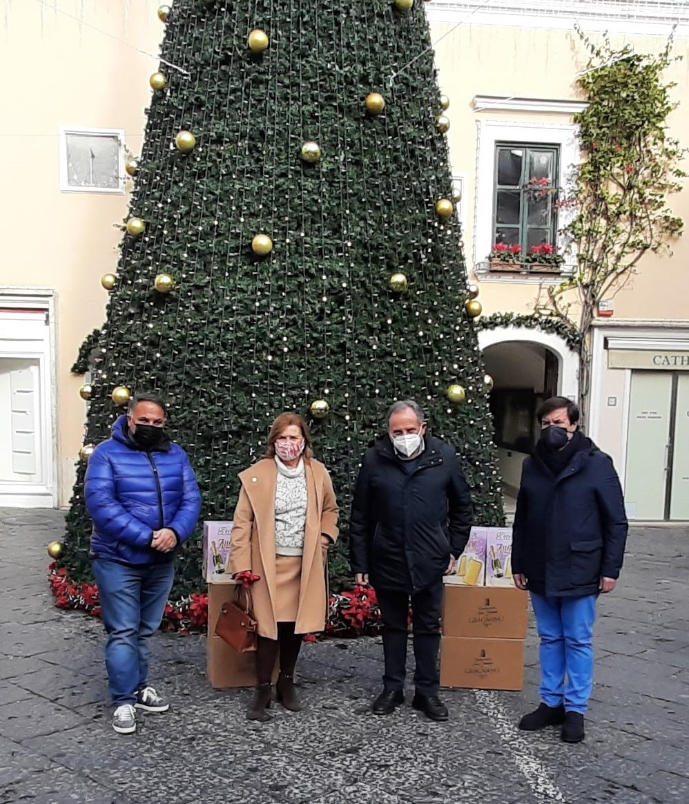 Gesto di solidarietà del Rotary Club Isola di Capri alla Città di Capri. Il Rotary Club Isola di Capri ha effettuato stamattina la donazione di 40 pacchi dono contenenti ciascuno una spesa alimentare sufficiente per una settimana e 40 strenne con il classico dolce natalizio ed una bottiglia di spumante per salutare il Nuovo Anno. Le confezioni sono state donate direttamente al Sindaco della Città di Capri, Marino Lembo e all’Assessore ai Servizi Sociali, Salvatore Ciuccio. Un pensiero del club isolano in favore delle famiglie più bisognose di un gesto solidale. La consegna è stata effettuata dal Presidente Luisa Federico e dal Prefetto del Club Costanzo Porta.