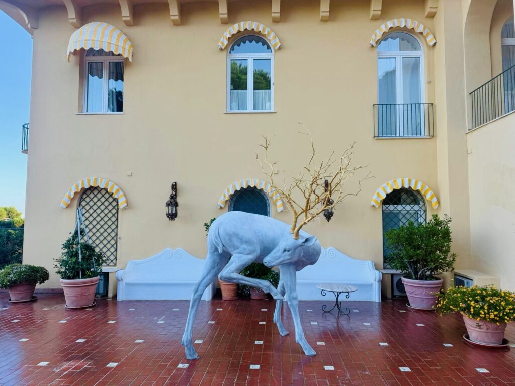 È tempo di cambiare destinazione quindi per Forest Guardian” , il cervo-scultura del duo spagnolo Coderch & Malavia, protagonista della Piazzetta/ Salotto del mondo dallo scorso 10 giugno, che trova oggi una nuova casa presso gli esterni dell’Hotel Caesar Augustus, ad Anacapri. L’opera, inno alla natura, al selvaggio, alla cura e alla protezione della Madre Terra, è impreziosita dalla florida vegetazione e dai caldi colori del mediterraneo che avvolgono la panoramica terrazza del resort di lusso, tra i più apprezzati al Mondo. Una collaborazione che si rinnova, quella con il Caesar Augustus, nel segno della fruizione della bellezza, tra arte e natura.