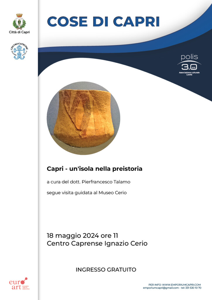 Nel primo appuntamento, tenuto sabato 18 maggio, il Dott. Pierfrancesco Talamo, archeologo e direttore dei siti museali capresi, ci ha parlato del tema dell’insularità nel periodo della preistoria a cui ha fatto seguito una visita al Museo Cerio guidata dal Direttore del museo Prof. Filippo Barattolo.