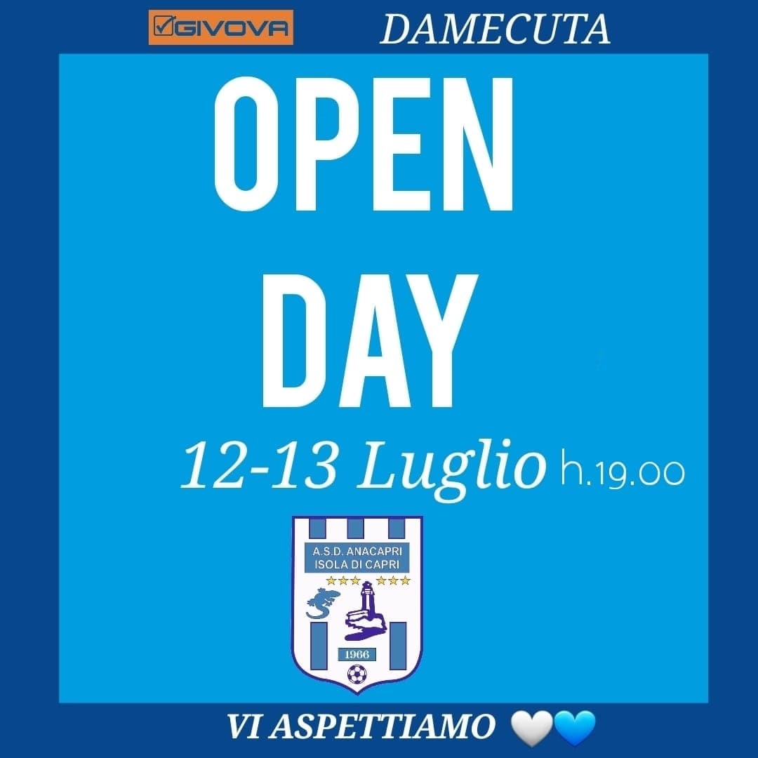 I classici Open Day daranno la possibilità di far conoscere il mondo Asd Anacapri a chi ancora non ne fa parte. Durante le stesse giornate degli Open Day i cancelli, su iniziativa del Direttore Generale Roberto Zora e del direttore tecnico Rudy Perelli, resteranno aperti anche per tutti i ragazzi che della scuola calcio già fanno parte ed avranno così modo di sporcare gli scarpini chiodati anche in questo mese.