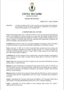 Fonte: Pagina Istituzionale Facebook – Città di Capri