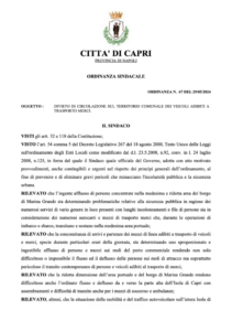 Ordinanza Sindacale: Divieto di circolazione sul territorio comunale dei veicoli adibiti a trasporto merci