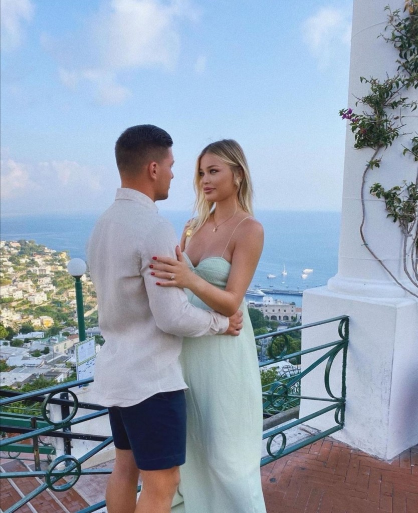 Ultimi a fare tappa sull’isola dell’amore tra le grotte di Capri e le sue terrazze a strapiombo sul mare sono stati il calciatore Luka Jovic e la modella Sofija Milosevic che si sono promessi amore eterno al largo dei faraglioni. La bellissima modella serba, in dolce attesa, ha infatti annunciato con foto e video sui social la proposta avuta qualche giorno fa su una barca a largo dei faraglioni. Nelle sue stories, dove ha documentato i momenti più belli del soggiorno sull’isola, la bellissima Sofija ha scritto: “Sì! Grazie per essere tu, grazie perché rido tanto con te, grazie per amarmi. Ti amo immensamente”.
