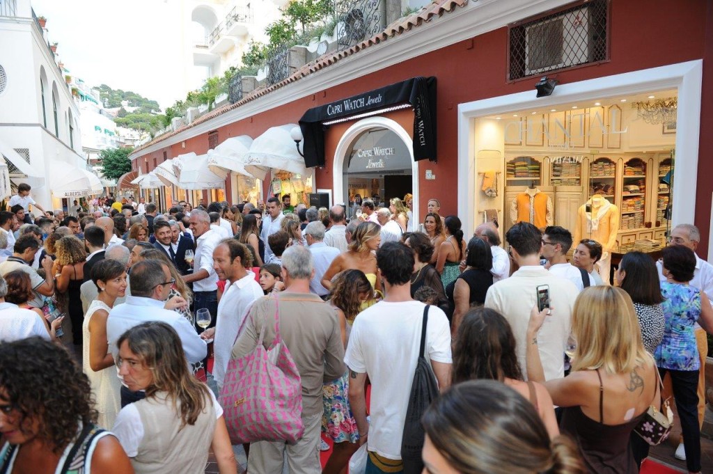 Anna Maria Boniello – Capri. Primo agosto di grande festa sull’isola azzurra per i “primi” venti anni di “Capri Watch”. Un evento che è riuscito a coinvolgere l’isola con la fifth avenue caprese di via Camerelle che dalle 19 in punto ha acceso i riflettori della mondanità glamour per l’opening di un altro esclusivo store, “Capri Watc Jewels”, la linea di lusso che va ad allungare il brand isolano che da alcuni anni ha valicato i confini di Capri per approdare nelle località più esclusive sia in Italia che all’estero. La data del primo agosto, con una festa a cui hanno partecipato centinaia di invitati, ha voluto rappresentare per Silvio e Alba Staiano e l’intera famiglia un ulteriore traguardo raggiunto nei loro venti anni di attività. Al taglio del nastro, che ha visto Silvio Staiano aprire un secondo store di lusso nella stessa strada e dirimpettaio alla “casa madre”, erano presenti le istituzioni tra cui i due sindaci, Gianni De Martino di Capri e Franco Cerrotta di Anacapri. Con il cocktail in via Camerelle è iniziata la festa di… compleanno che poi è continuata nel parco del grand hotel Quisisana, location elegante scelta da Silvio e Alba Staiano per festeggiare i primi venti anni di “Capri Watch”. Ai bordi della piscina e della “Colombaia” dell’esclusivo albergo, sotto la sapiente regia dello staff del Quisisana, è stata servita la cena da un menu raffinato. Una ricerca e un’attenzione ai dettagli partendo dalla scenografia scelta per la serata dove su un cartoncino d’oro inciso in argento veniva raffigurato un quadrante di un “Capri Watch” con le lancette fissate su un venti a caratteri romani. Regista occulto dell’intera serata Silvio Staiano dal ponte di comando del tavolo imperiale dove erano seduti papà Oreste, mamma Rosa, la sorella Alba e la moglie Valeria ed ovviamente i piccoli Paola e Alessandro a cui Silvio ha dedicato un video e un nuovo orologio disegnato proprio da quest’ultimo. Da un lato della piscina un maxi schermo che diffondeva live le immagini salenti della serata e dove all’improvviso sono apparsi in diretta il volto e la voce del testimonial di “Capri Watch” Fabio Fognini che, da Amburgo, alla vigilia della finale dell’ATP, ha voluto essere presente con un suo messaggio augurando e augurandosi ancora maggiori successi e sempre più ambiziosi traguardi. Allo scoccare delle 23, la stessa ora in cui vent’anni fa fu esposto in vetrina il primo “Capri Watch”, si è alzata dal tavolo degli ospiti Veronica Maya, storica testimonial del brand caprese, straordinaria presentatrice e conduttrice a sorpresa dell’intera serata, è salita sul palco chiamando accanto a sé Peppino Di Capri, guest star dell’evento, che ha accompagnato con le note di “Champagne” il brindisi di rito. Ed ovviamente il cantante icona della musica italiana e ambasciatore di Capri nel mondo ha voluto regalare agli ospiti un medley dei suoi successi più famosi, da “Luna Caprese” a “Voce e notte”, dal “Sognatore” fino a “Capri song” (la canzone diventata l’inno di Capri con le parole di Mogol) che ha coinvolto tutto il parterre degli ospiti. Da Paolo Fiorillo co-autore del motivo a Wolf Chitis e Rossana, il figlio più giovane di Peppino Dario Castiglio con Chicco Coda, Adriano Panatta in piena forma, Gianni Ippoliti dal look classico abito grigio con un tocco di stravaganza dalle scarpe “spaiate” una bianca e l’altra nera. Presenti gli irriducibili vacanzieri storici Valerio e Viky Romano, Fernanda Speranza e Giuseppe Borsetti. Tra gli invitati, inaspettata, alle 23 in punto, si è presentata dall’alto una straordinaria luna caprese che ha illuminato tutta la scena.