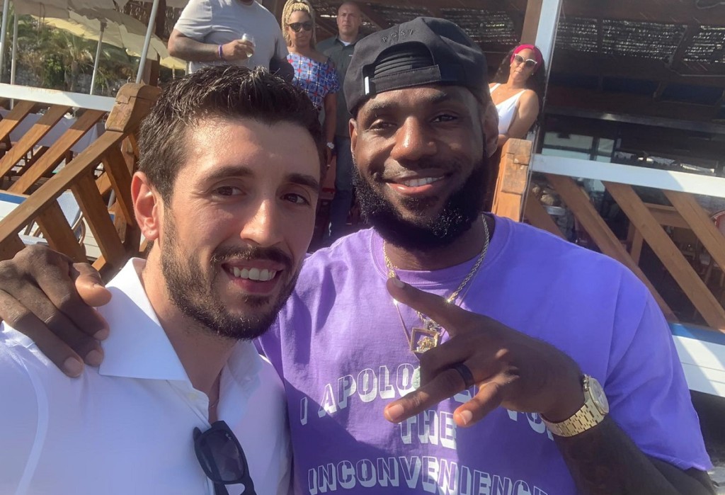 Blitz d’ amore a Capri per festeggiare il quinto anniversario di matrimonio per LeBron James, ovvero The King per i fans del basket. Il gigante dei Los Angeles Lakers ha scelto insieme a sua moglie Savanna di trascorrere una giornata a Capri e prima di lasciare l’ isola dell’ amore ha postato su Instagram una foto della skyline di Capri con sopra scritto «Love this place». Poi la prua della barca si è diretta verso Nerano da «Tommaso allo Scoglio», il ristorante sulla spiaggia di Marina del Cantone, dove Tommaso ed Antonia avevano riservato un tavolo lontano dalla vista di curiosi. Colazione per James e Savanna, poi la star del basket ha salutato Tommaso e ha regalato a suo nipote Giancarlo la canotta dei Lakers.
