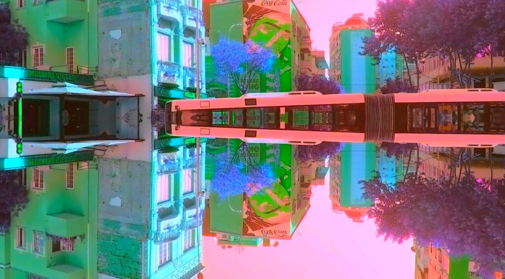 Pink City è un racconto visivo, un gioco narrativo. Venti minuti di installazione digitale che raccontano di un’unica grande città. Dei luoghi attraversati.