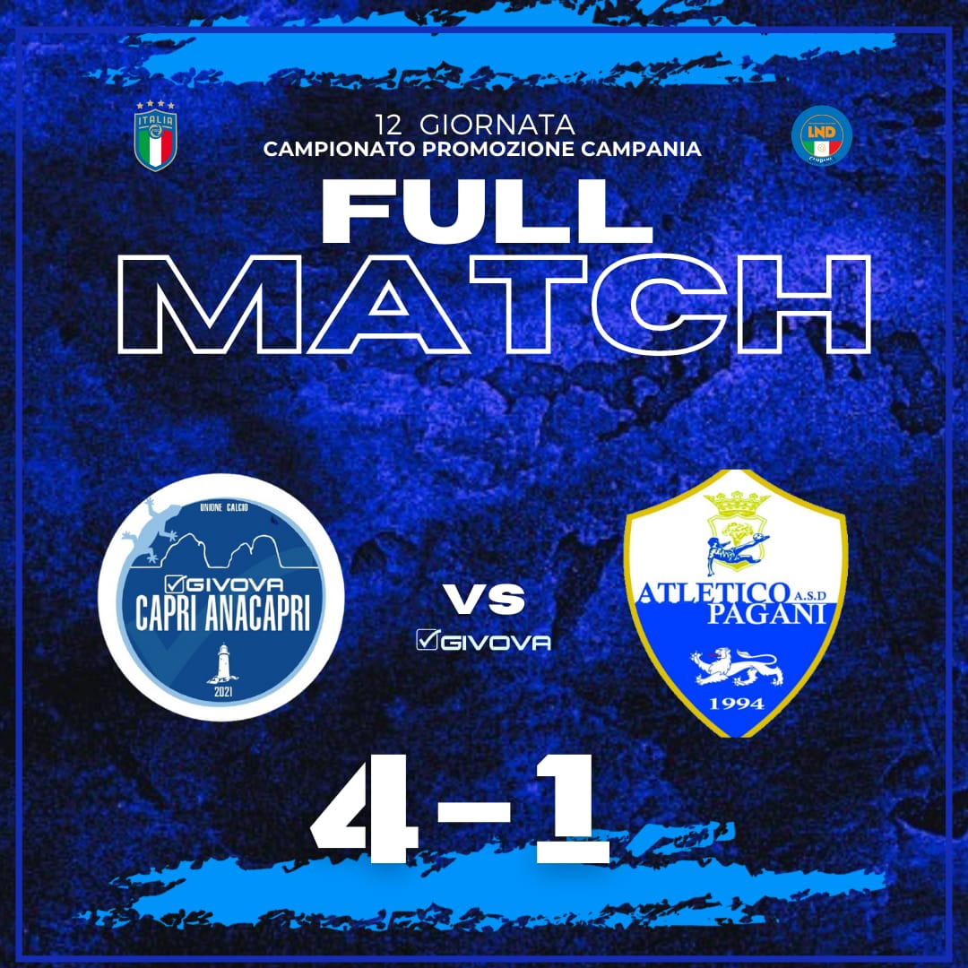 Torna in campo e alla vittoria l’Uc Givova Capri Anacapri che supera al San Costanzo 4 a 1 l’Atletico Pagani.
