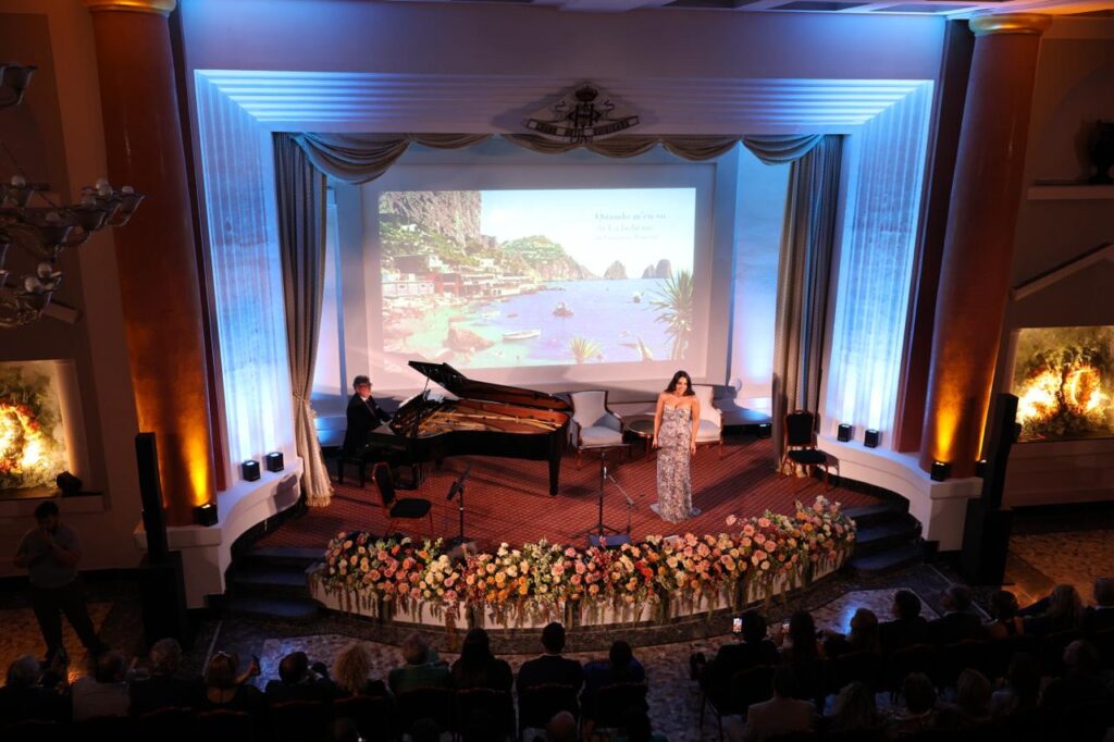 Il grande evento di prestigio internazionale ideato, prodotto e organizzato dalla Capri Arte dei Fratelli Aldo e Bruno Damino, che da trent’anni ne custodiscono lo spirito e la visione contribuendo insieme alla nuova generazione della famiglia a valorizzare il patrimonio culturale e artistico dell’Isola azzurra, ha visto Plácido Domingo protagonista della serata con un eccezionale recital, affiancato da Juliana Grigoryan, giovane e celebre soprano di fama internazionale che ha incantato il pubblico con la sua tecnica raffinata, potenza espressiva e sensibilità artistica che l’hanno già consacrata nei più importanti teatri del mondo. Domingo e Grigoryan sono stati accompagnati al pianoforte dal Maestro James Vaughan, pianista fra i principali accompagnatori di recital e vocal coach europei, primo assistente del Maestro Muti in ben 17 produzioni al Teatro alla Scala di Milano dove è tuttora Primo Maestro Collaboratore.