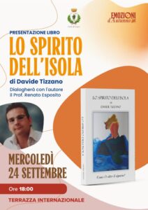 Presentazione libro “Lo spirito dell’isola” 24 settembre ore 18.00 Terrazza Internazionale