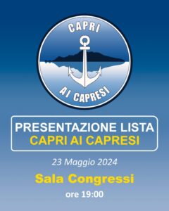 Presentazione Lista “Capri Ai Capresi” 23 maggio ore 19 Sala Congressi