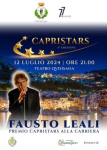 Domani 12 Luglio alle ore 21.00, presso il teatro Quisisana, si terrà la prima edizione di Capristar. evento che nasce dalla collaborazione tra Massimo Turturro e l’Assessorato Grandi Eventi della Città di Capri, pensato per diventare un appuntamento fisso dell’estate caprese. “E’ il primo appuntamento del più ampio progetto pluriennale dei grandi eventi in progammazione” – dichiara l’assessore Salvatore Ciuccio – “e vuole essere un ritorno ai fasti del passato allorquando grandi artisti internazionali si alternavano nella Certosa di San Giacomo e nella Piazzetta, salotto del mondo”. Il Sindaco Paolo Falco ha tenuto a conferire, all’interno della Giunta, specifica delega ai Grandi Eventi proprio per rilanciare le grandi manifestazioni che hanno sempre dato lustro a Capri nel mondo.