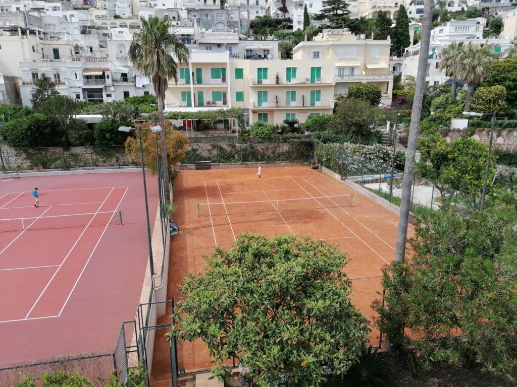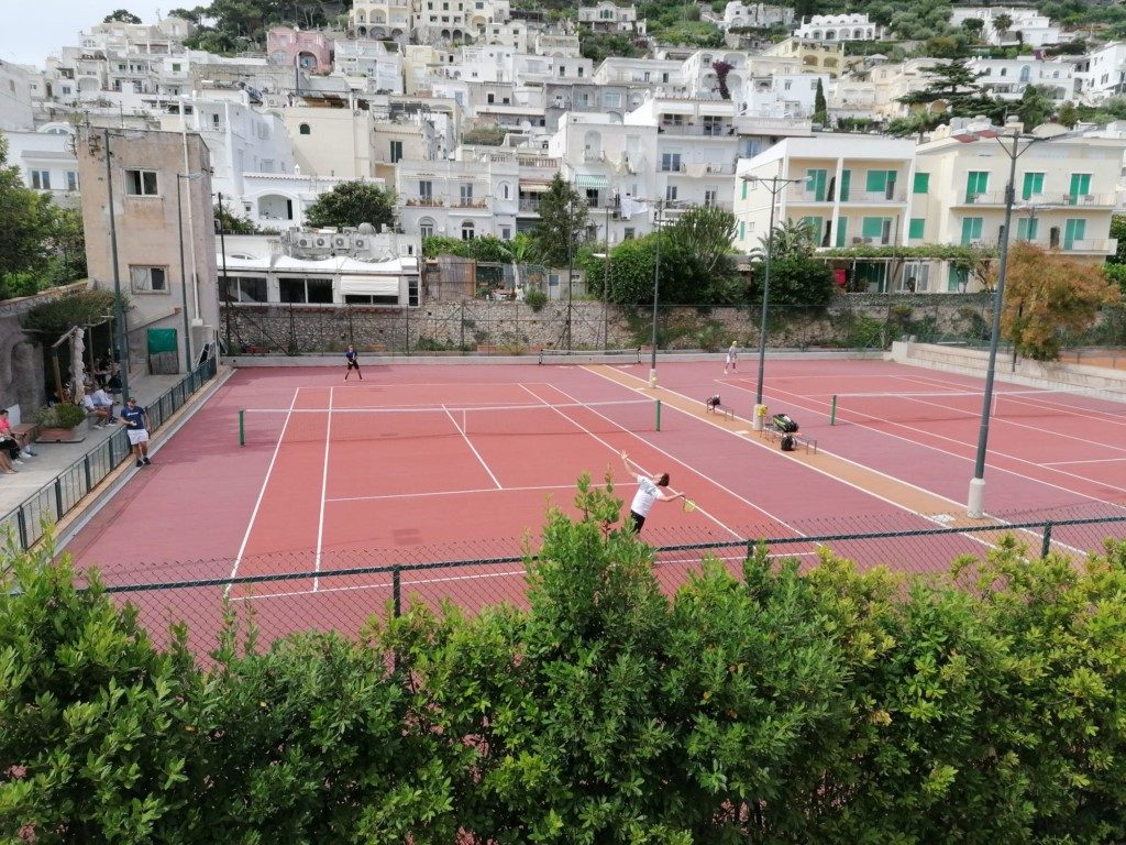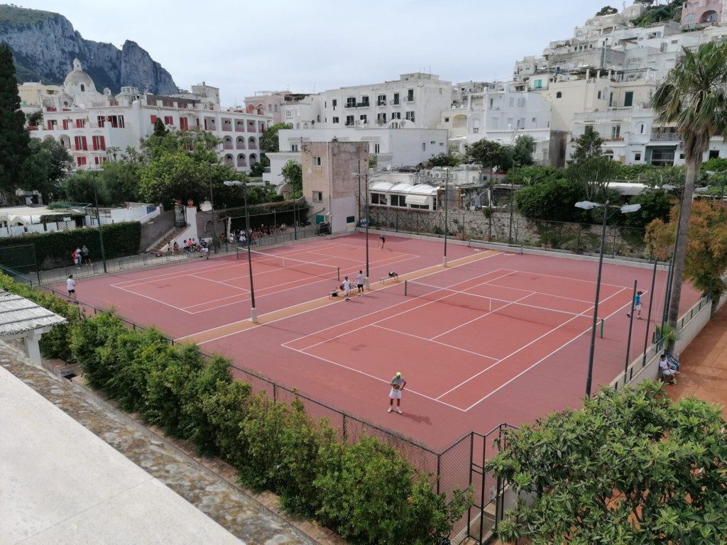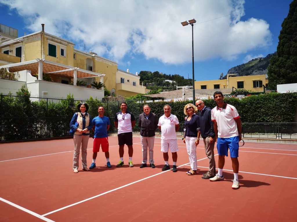 Grande match amichevole dell’attività agonistica sui campi del Tennis Club Capri, che ha voluto festeggiare la riapertura ospitando i giovani tennisti under 14, under 16 e diciottenni del circolo New Tennis Poseidon di Torre del Greco. Gli allievi sono arrivato a Capri capitanato dal maestro Giancarlo Petrazzuolo, ex giocatore di serie A della squadra del Capri Sports Academy. E’ stata una giornata all’insegna dello sport, dell’amicizia ma anche di tanto agonismo dopo il lungo periodo di lockdown che ha tenuto lontano dai campi da tennis i giovani atleti che hanno voluto in segno beneaugurale aprire a Capri la loro attività agonistica. Ad inaugurare questo primo torneo dell’estate hanno portato il proprio saluto il Sindaco di Capri, Marino Lembo, e l’Assessore Paola Mazzina auspicando loro una pronta ripresa turistica e sportiva. Ai bordi dei campi tanti frequentatori del circolo caprese che hanno seguito i match insieme agli ospiti sostenendo i giovani protagonisti del gemellaggio che è stato siglato tra i due club. Il gemellaggio si è concluso con la foto ricordo della simbolica giornata sportiva con il Sindaco Marino Lembo, l’assessore Mazzina, i rappresentanti della famiglia Breglia ed i maestri dei due sodalizi.