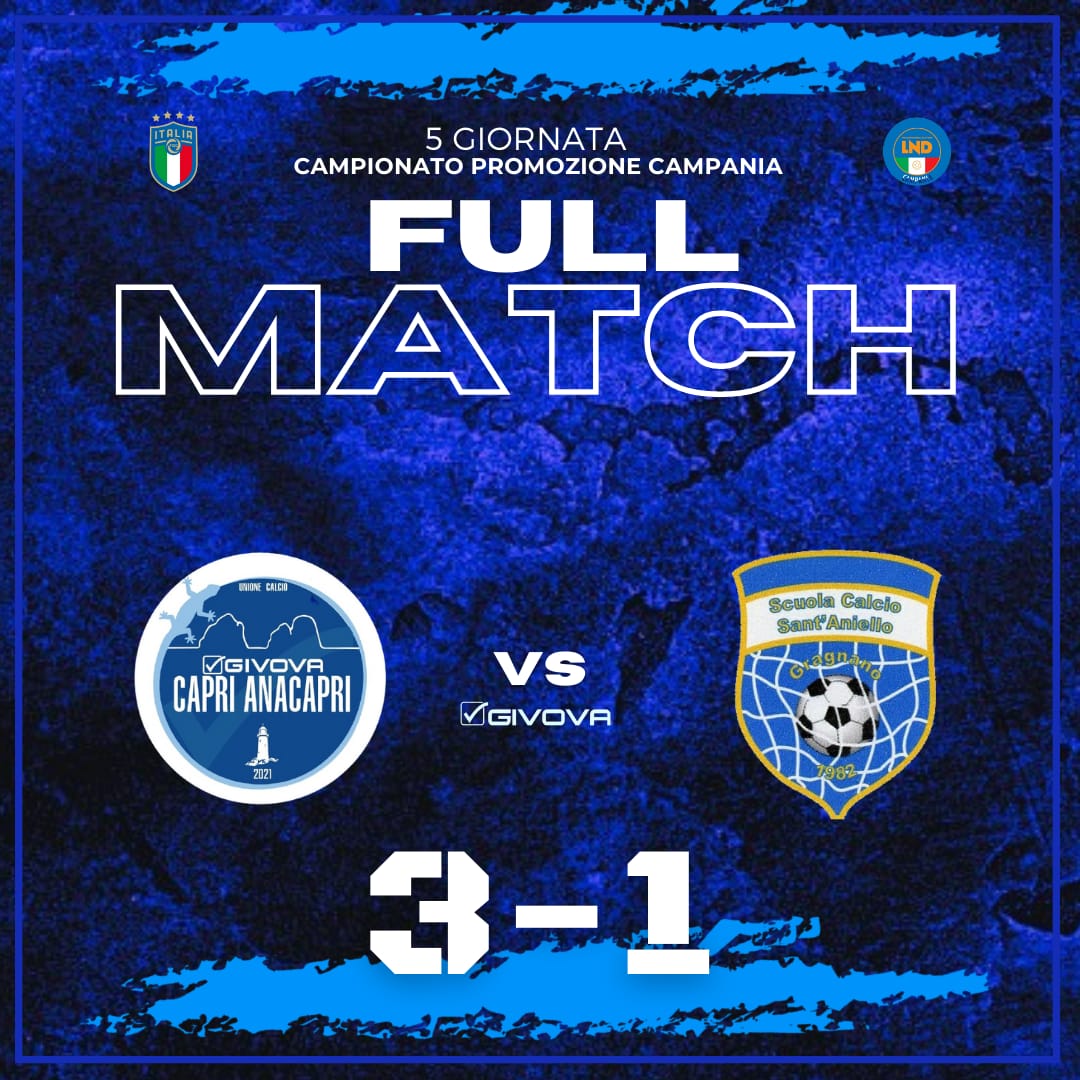 Prima vittoria stagionale per l’Uc Givova Capri Anacapri che in casa batte per 3 a 1 il Sant’Aniello Gragnano.