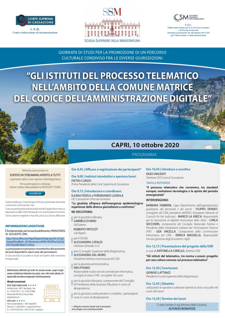 Progetto per una cultura comune sul processo telematico, se ne discuterà a Capri sabato 10 ottobre