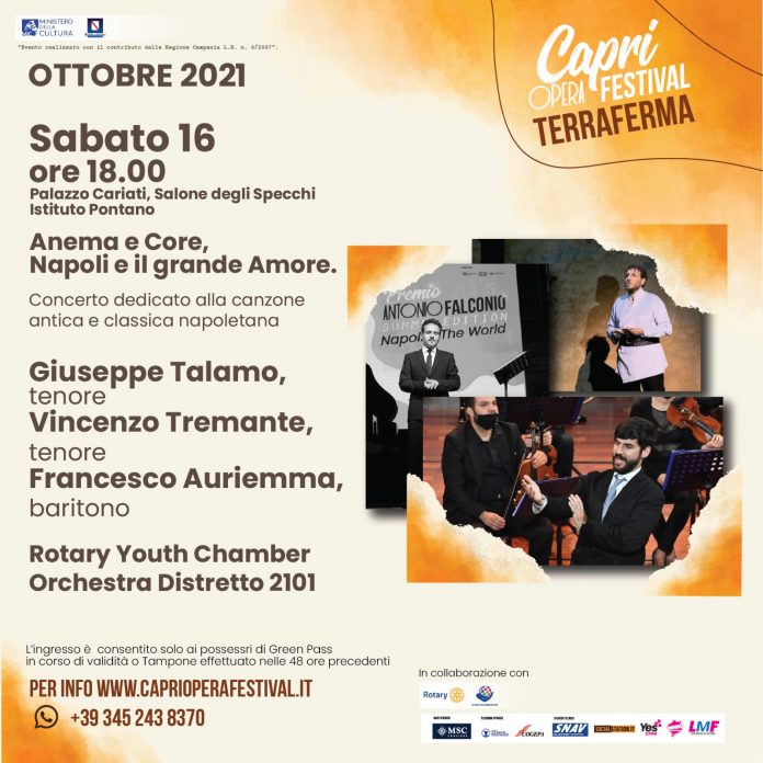 NAPOLI – Dopo gli appuntamenti ospitati sull’isola azzurra ad inizio settembre, arriva anche a Napoli il Capri Opera Festival 2021 con la sua sezione autunnale intitolata Terraferma.