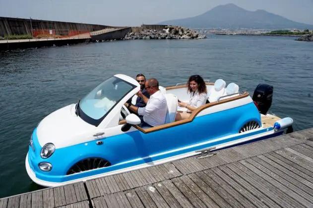 Altro che la “Spiaggina” la Fiat 500 che l’avvocato Gianni Agnelli si fece costruire per girare a Capri, ispirandosi ai suoi colori e alle sue linee, ora all’asta con cifre da sballo per gli appassionati delle quattro ruote. Nel terzo millennio l’isola azzurra è tornata a suscitare l’interesse dei creativi designer tecnici che in soli 4 anni sono riusciti a costruire la 500 del mare, Galasso ha dovuto richiedere necessariamente l’autorizzazione a Stellantis, o meglio all’Ufficio Licensing e al Centro Stile Fiat. A lavoro ultimato, da Torino hanno diffuso una nota in cui si legge che “la Fiat 500 del mare ha caratteristiche tecniche e funzionali molto avanzate ed è stata costruita con materiali che adottano soluzioni innovative e originali. Il progetto portato avanti da Galasso con il contributo del Centro Stile Fiat sostiene il ricco patrimonio del brand attraverso la riproduzione di una delle auto più iconiche, simbolo della dolce vita”. Per appassionati e curiosi per la gita in mare in auto, il prototipo stato esposto sul piazzale dello Yacht Club di Marina di Stabia (porto turistico di Castellammare, alle porte di Napoli).