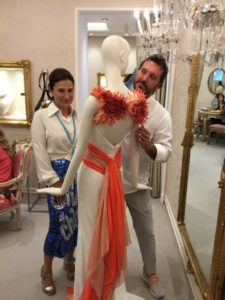 Mariano Della Corte. Party in gioielleria da Chantecler dove è stato presentato GLAmour, un abito gioiello dedicato all’ isola dell’ amore, nato dall’ incontro tra l’ estro di Chantecler e il talento dello stilista Antonio Riva. Due eccellenze del lusso che si incontrano per creare una sinergia e un progetto molto speciale: l’ abito GLAmour, come sintesi tra glamour e amour. Antonio Riva è noto per i abiti da sposa e per essere lo stilista delle star. Così come Capri è l’ isola dell’ amore e Chantecler il gioielliere che crea i gioielli per le donne del jet set: coralli dalle tinte di arancio e rosso sono finemente ricamati sullo chiffon dell’ abito da sera, un lungo modello in cady color bianco seta con scollatura a barchetta sul davanti e arricchito sul retro, da un oblò completamente decorato dai preziosi rami di corallo di Chantecler caratterizzati da forme naturali e da colori intensi che sfumano dal rosso al rosa.