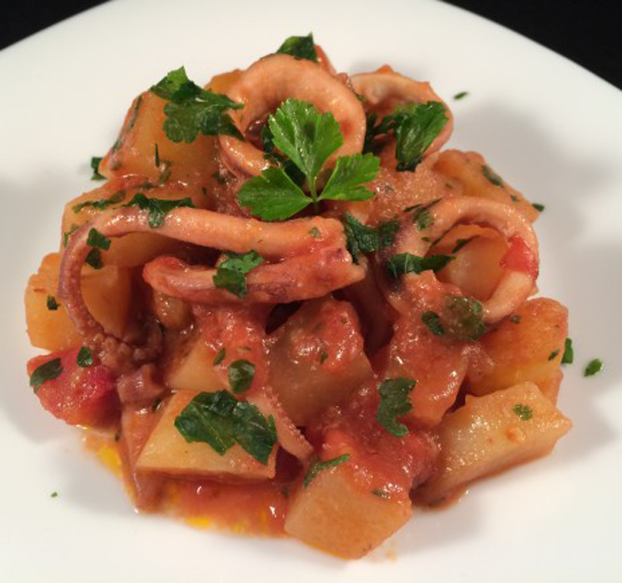 Il raviolo, un classico ma in questo caso semplice “forma” di una “pasta di totano”, alla quale aggiungere la colatura di alici, i pomodori che richiamano le tradizioni contadine locali anche se in questo caso nella versione “secca”, un trionfo di verdure degli orti isolani e meridionali e infine la patata che non manca negli appezzamenti terreni capresi ed anacapresi.