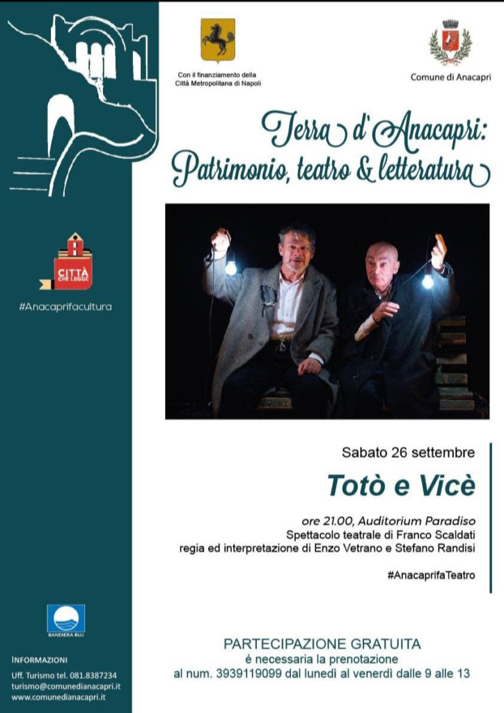 Riparte alla grande la rassegna Terra d’Anacapri: patrimonio, teatro & letteratura, finanziata dalla Città metropolitana di Napoli.