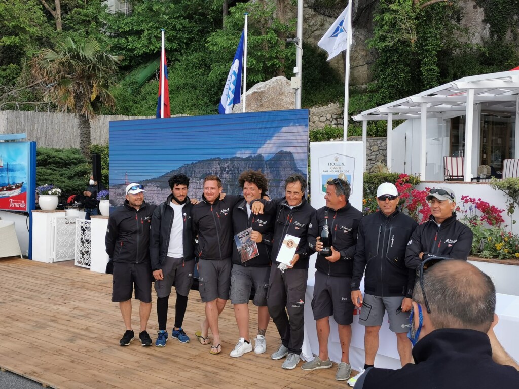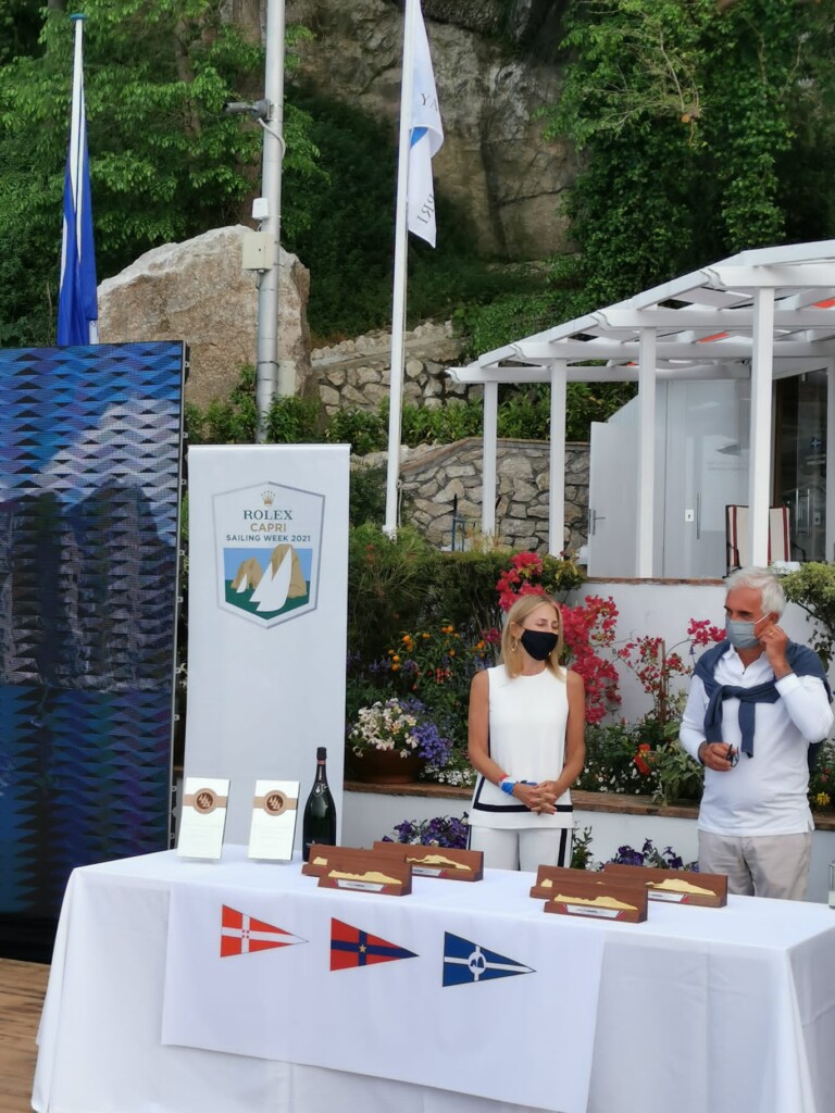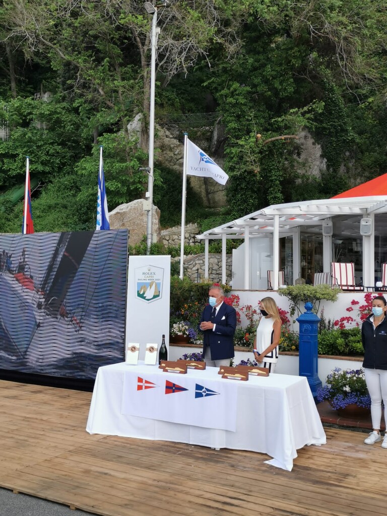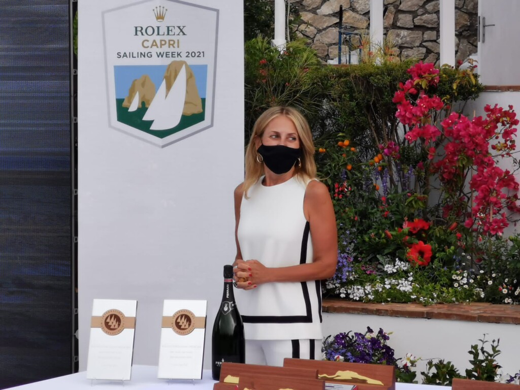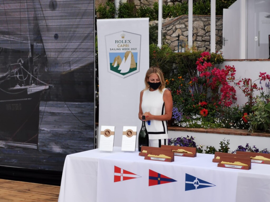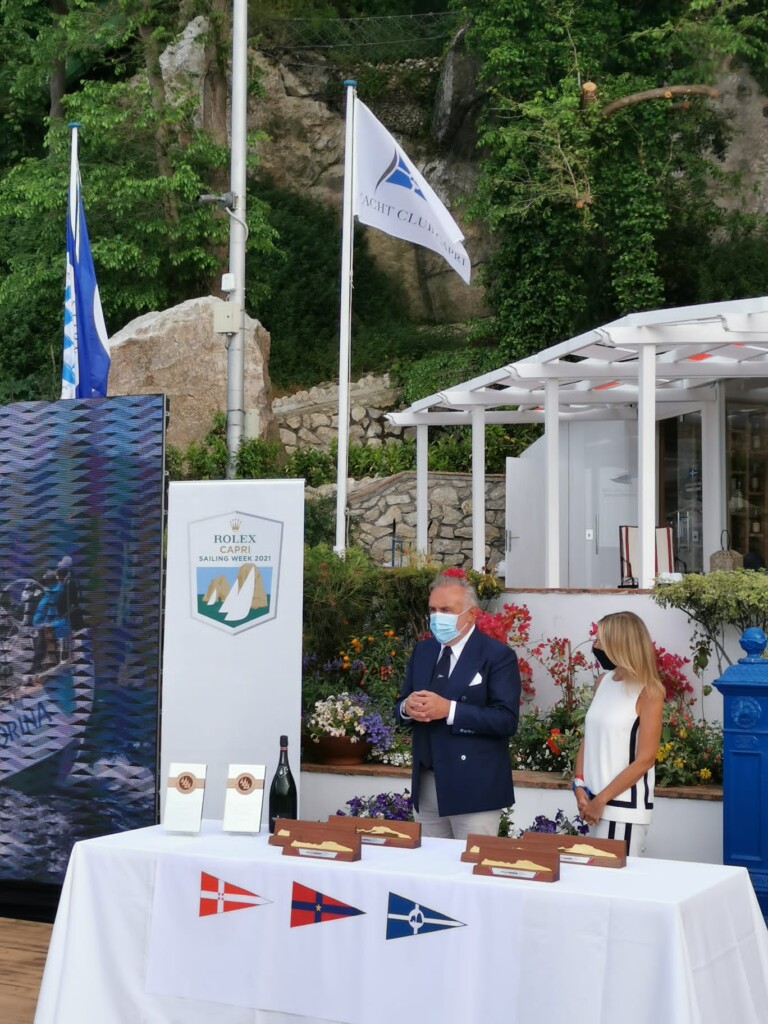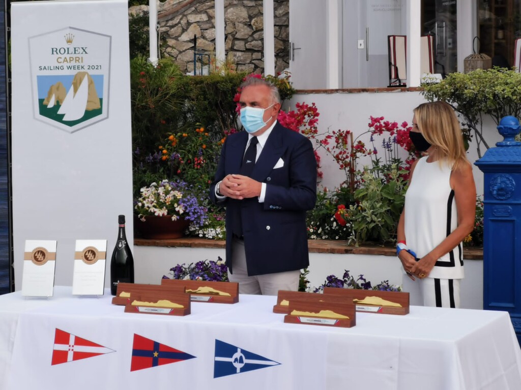 Premiazione in banchina dei vincitori della regata Maxi Yacht Capri Trophy. Una delle tre regate più importanti inserite nella settimana della Rolex Capri Sailing Week 2021, che oggi ha visto scendere in campo le regine del mare e che questo pomeriggio ha visto concludersi la prima fase con la premiazione dei regatanti, che si sono classificati ai primi posti, con Madame Brunella moglie del Presidente dello YCC D’avanzo che su richiesta del segretario generale Ima ammiraglio Andrew. Mc Irvine ha consegnato i premi ai vincitori della regata. La premiazione in banchina ha visto davanti alla sede Yacht Club Capri, che quest’anno si è presentata con un nuovo look, il Presidente dello YCC Achille D’avanzo che ha accolto da perfetto padrone di casa i rappresentanti dei circoli velici che competono nella Rolex Capri Sailing Week, i velisti vincitori e gli equipaggi che hanno partecipato alla regata. La settimana delle vele continuerà spostandosi a Napoli già da domani pomeriggio per Tre Golfi, una tre giorni che vedrà ancora le vele sfilare nei due golfi della Campania e nelle acque di Ponza per poi ritornare a Capri il 18 e continuare a lottare tra onde, vento e bolina per l’assegnazione degli altri premi in palio.