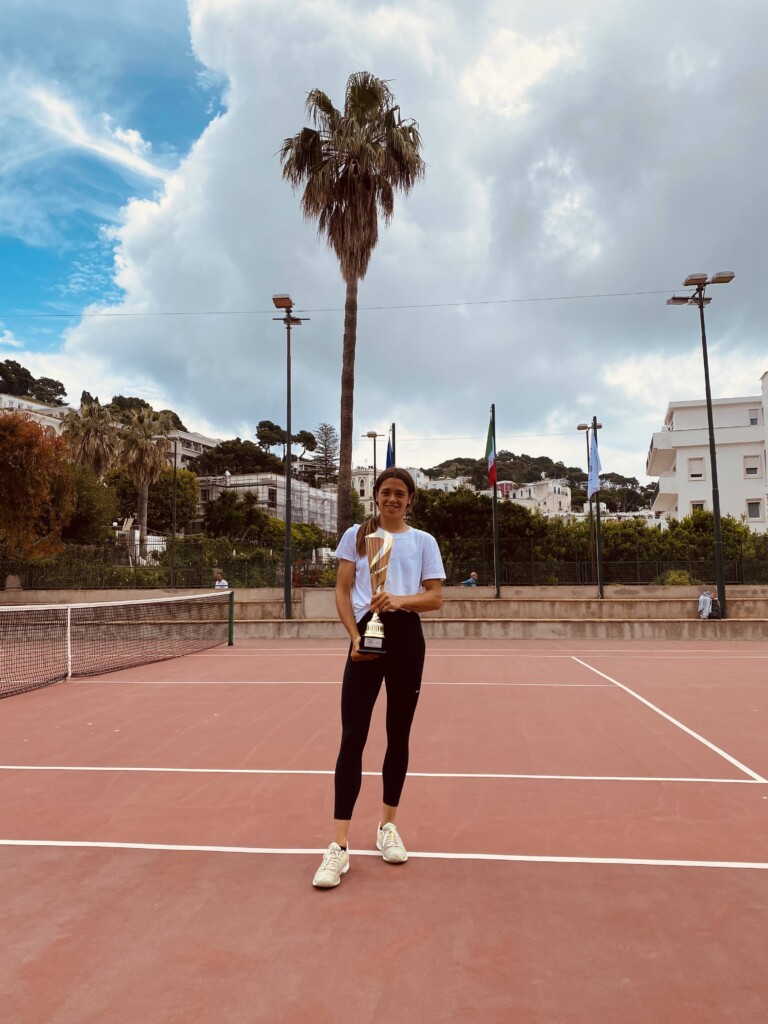 La caprese Sara Aversa ha vinto ieri il torneo nazionale open femminile battendo in finale Valeria Acquaviva al Tennis Club Capua per 3-6 , 6-3 , 6- 1. ” Prima finale , prima vittoria”, così commenta ancora un po’ incredula la Aversa , che aggiunge ” all’inizio ero molto tesa, Valeria era in vantaggio, ma poi ho provato a variare gioco e mi è andata bene”. La campionessa, iscritta al Tennis Club Napoli, è affezionatissima al Tennis Club Capri dove si allena con impegno e determinazione da quando era bambina.