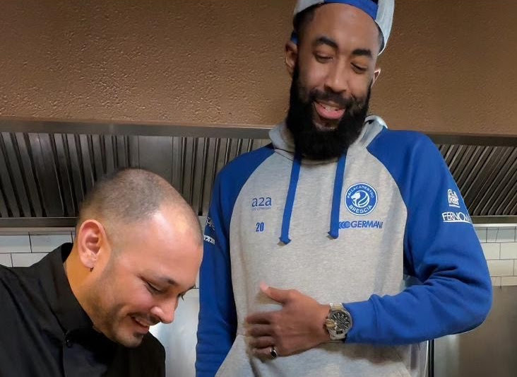 Scialatielli alla gallinella di mare, piatto della tradizione napoletana, “apprezzato per la semplicità dei suoi sapori e la sua delicatezza”, in una ricetta a quattro mani di Ciro Di Maio, lo chef napoletano trapiantato in Lombardia con Mike Cobbins, giocatore di basket della Germani Brescia. Un piatto storico con il pesce bianco, i pomodorini, l’olio extravergine, ma anche un tocco di prezzemolo con alla fine il sapore del piccante, dunque, che come sottolineato da chef Ciro è la sintesi di “gusti semplici, ‘o cuoccio è molto amato. E come diciamo noi napoletani… Quanno buono buono”. Infatti la gallinella di mare come spiegano da San Ciro, il locale di Brescia di Ciro Di Maio noto per la veracità delle sue pizze, ma anche per il suo menù alla carta e che rappresenta la tradizione napoletana, a partire dagli ingredienti è “un pesce noto anche come coccio (‘o cuoccio) in Campania, pesce che si presta molto bene alle ricette di pasta – spiegano – in particolare quella lunga, come gli scialatielli, formato usato nella tradizione campana, con un nome che deriva da due parole tipiche della lingua napoletana, ‘scialare’ (godere) e ‘tiella’ (padella). Per me è un orgoglio, portare i gusti semplici della mia terra anche in Lombardia e diffonderli nel mondo dello sport professionistico è un onore. E poi ci siamo anche divertiti a parlare in inglese – ha spiegato Di Maio raccontando la sua nuova avventura insieme al cestista professionista americano – n questo momento di difficoltà, tra guerre e crisi mondiali, gli ho ricordato il detto napoletano ‘Quanno buono buono cchiù nera d’’a mezanotte nun po’ venì’. E così ce lo siamo tradotti tra di noi in ‘When good good. More black of midnight can’t come’. È stata una stupenda esperienza”.