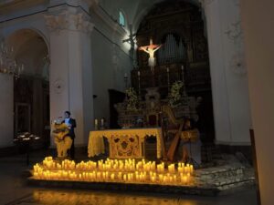 In serata, alle ore 18, la Chiesa di Santo Stefano ha ospitato un atteso momento performativo: la Lectura Dantis affidata alla voce dell’attore Paolo Cresta, accompagnato all’arpa da Stella Gifuni. Un evento aperto alla comunità isolana, che ha restituito la potenza evocativa del testo dantesco in un luogo pregno di spiritualità.