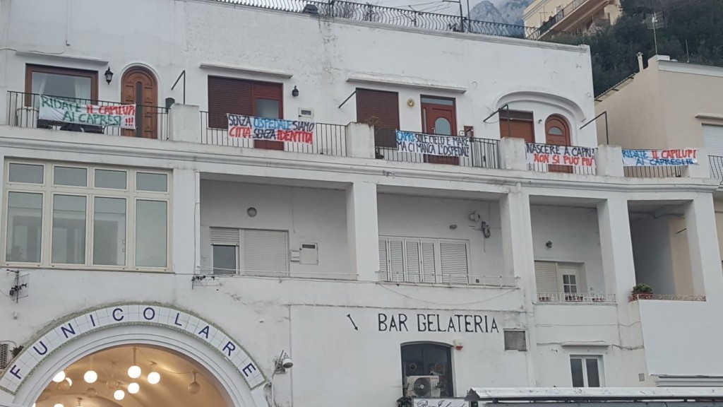 Anna Maria Boniello – “Senza ospedale siamo città senza identità”, “Capri: sole cielo e mare ma ci manca l’ospedale”, “Nascere a Capri? Non si può più”, “Ridate il Capilupi ai capresi!!!”. Sono i testi comparsi su alcuni striscioni di protesta, anonimi, affissi questa mattina sulle facciate e sui balconi dei palazzi di fronte al porto di Marina Grande a Capri. Gli striscioni, che seguono un’analoga protesta attuata qualche settimana fa all’esterno dell’ospedale Capilupi, mirano a sensibilizzare le autorità e le istituzioni sulle problematiche che investono la sanità sull’isola e che hanno visto il nosocomio caprese, notevolmente ridotto e ridimensionato negli ultimi anni, più volte al centro di proteste.