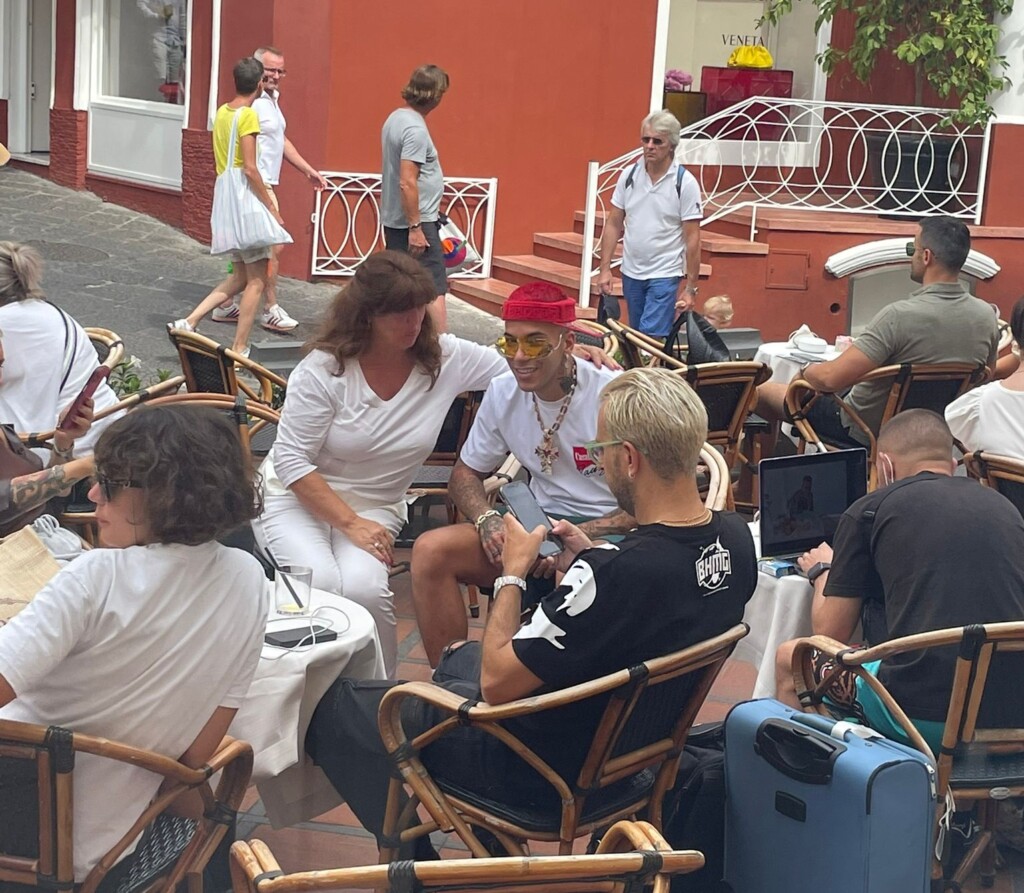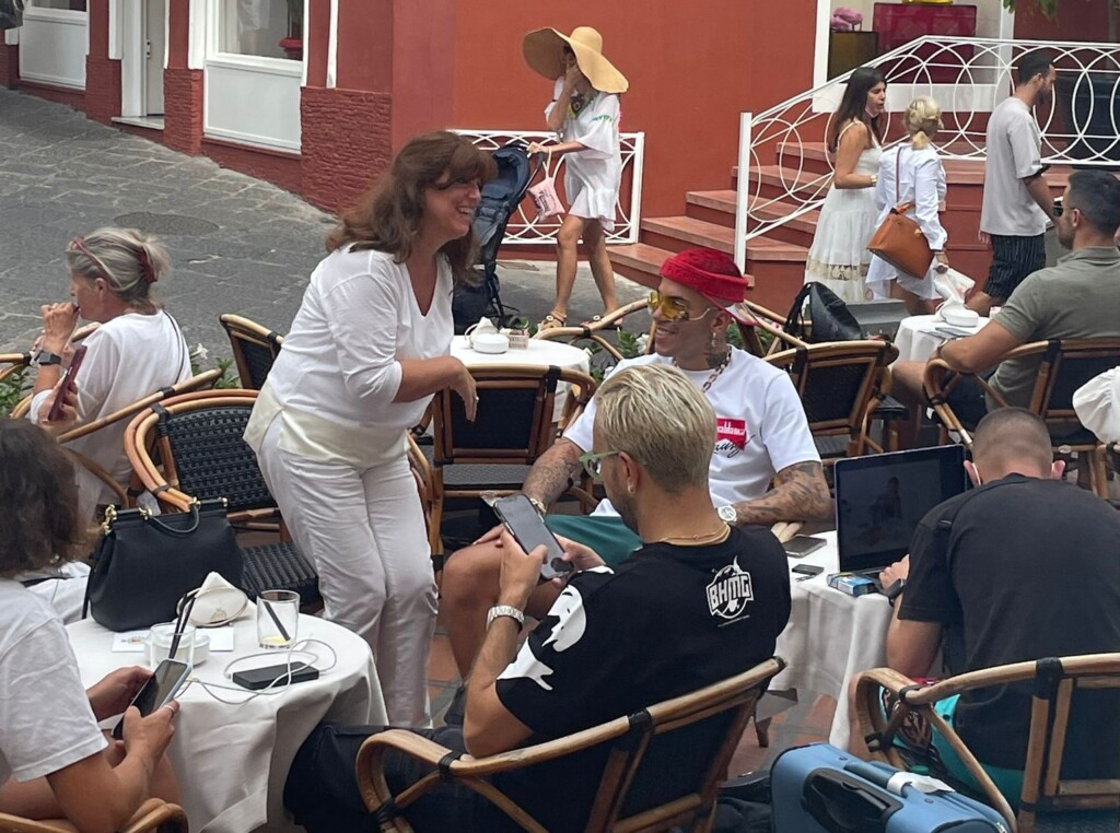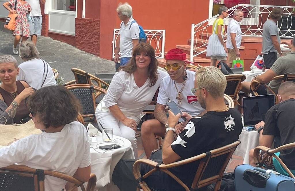 Continua la vacanza lavoro di Sfera Ebbasta a Capri. Il giovane rapper italiano che fa impazzire le folle di teen ager ha scelto come buen retiro sull’isola il Grand Hotel Quisisana dove questa mattina è stato colto dall’obiettivo del fotografo mentre si era concesso mezz’ora di relax sulla terrazza del Quisi Bar, lo spazio che affaccia su via Camerelle, la famosa strada delle griffe internazionali pari alla Fifth Avenue newyorkese, prima di concedersi alle telecamere dei videomakers che lo stanno riprendendo negli angoli più belli e suggestivi dell’isola per un nuovo videoclip.Sfera Ebbasta ha raggiunto il successo in pochi anni, è già con il suo primo album ha scalato velocemente la classifica dei successi con migliaia di copie vendute tanto da essere insignito addirittura con il disco d’oro dalla Fimi.La vacanza lavoro a Capri ha visto anche il tour serale abituale del jet set con tappa irrinunciabile al ristorante Aurora, l’elegante ritrovo del buon gusto a via Fuorlovado e champagne dedicato da Angelica, la gelateria accanto al ristorante che addirittura ha creato un’etichetta per lui.Il dopocena è finito con un siparietto fuori programma con Sfera Ebbasta che ha modificato il nome del locale apponendo delle lettere adesive che hanno trasformato il nome della gelateria da Angelica in Angelina, il nome della fidanzata e modella argentina della rapper.