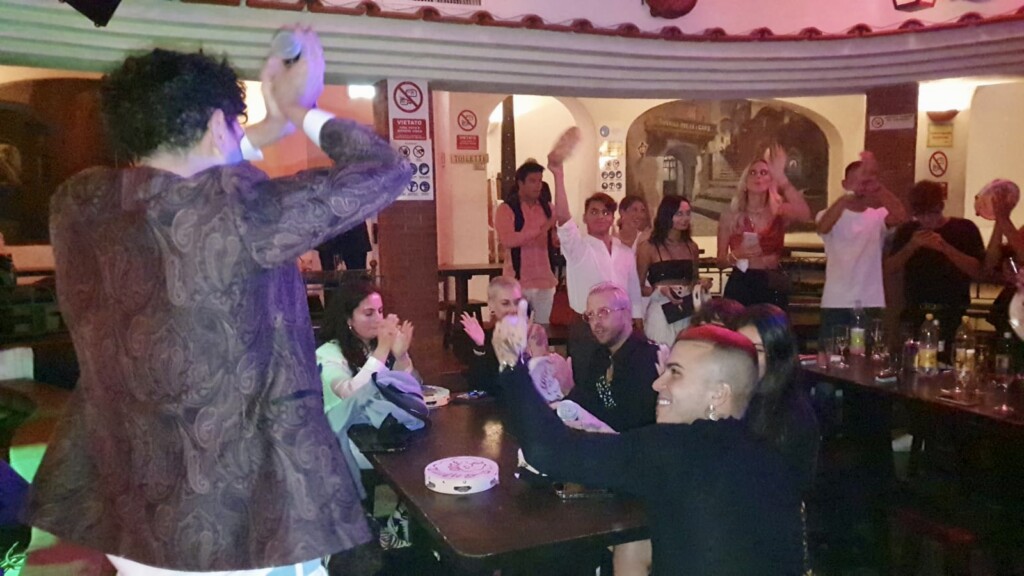 Il noto rapper , popolarissimo sui social, ha intonato dal tavolo in compagnia di amici, al musicista oltre che suo manager Shablo, ed il suo staff, i più grandi successi della musica napoletana, primo tra tutti ” O surdato Nnammurato”, ormai “inno” del locale.