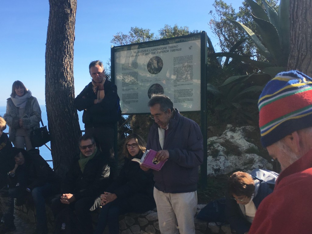 Alla presenza di un folto gruppo di appassionati, alcuni dei quali arrivati appunto dalla penisola sorrentina, il Prof. Esposito ha ripercorso i luoghi preferiti dallo scrittore britannico, amichevolmente chiamato “Uncle Norman” dai tanti isolani che ebbero modo di conoscerlo durante i suoi tanti soggiorni capresi, avvenuti tra il 1888 e il 1952, anno della sua morte tra le mura di Villa Tuoro, all’epoca proprietà del suo caro amico Kenneth Macpherson, anch’egli scrittore. La passeggiata si è poi estesa fino a Parco Astarita, recentemente recuperato in tutto il suo splendore, e Villa Jovis, storica dimora dell’Imperatore Tiberio, sulla cui leggendaria figura Douglas ebbe cura di scrivere una monografia che potesse finalmente dissipare le nebbie di infamia che per millenni avevano accompagnato il suo nome.
