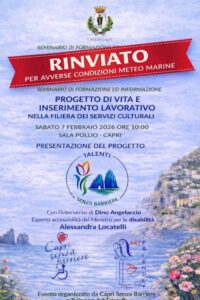 Talenti senza barriere: Rinviato il Seminario di Formazione ed Informazione di oggi Sabato 7 febbraio