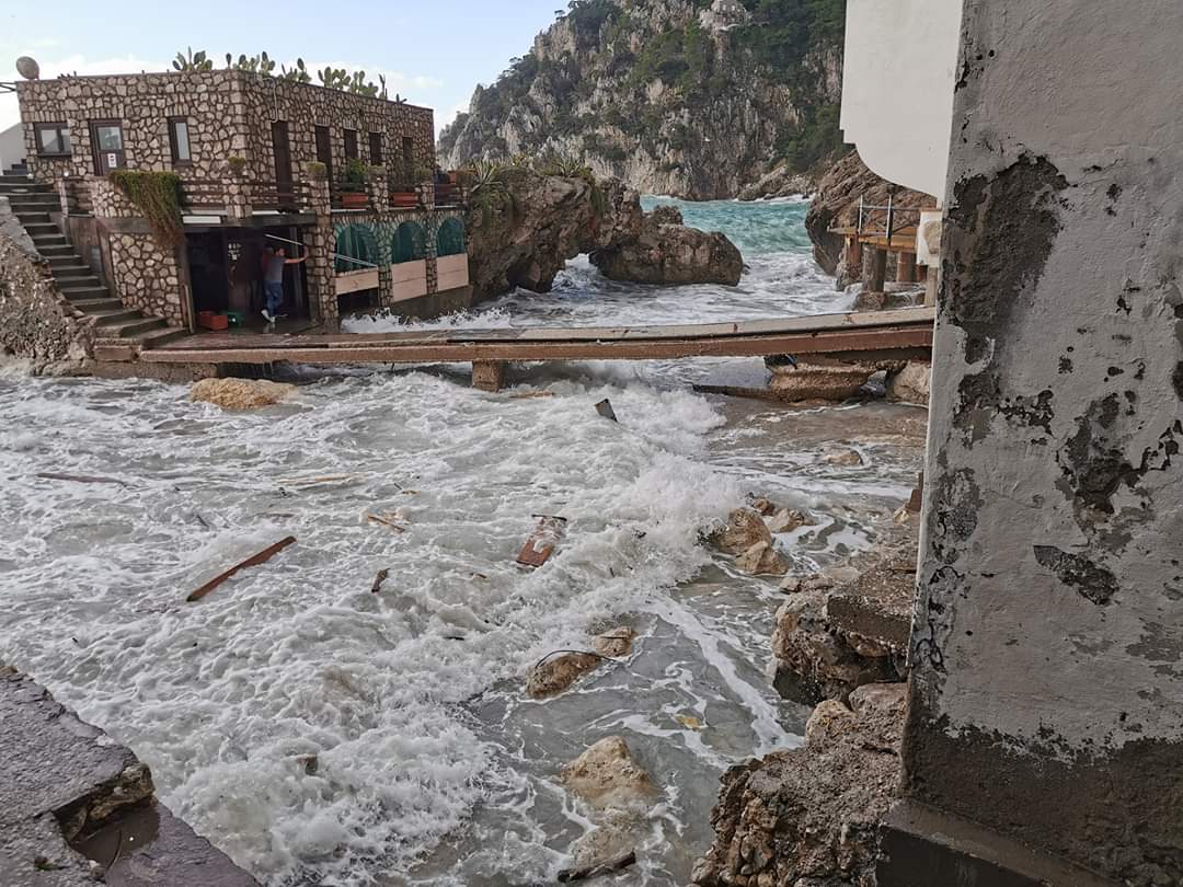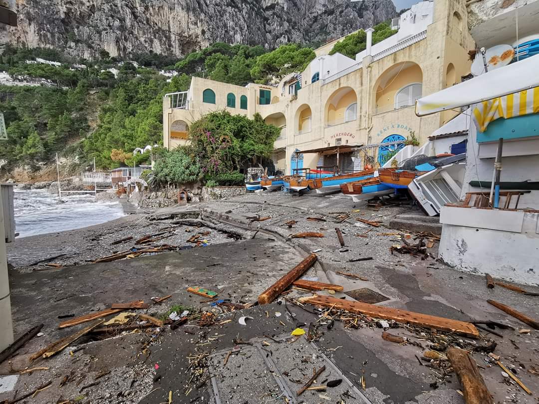 A Capri si contano i danni dopo il maltempo che ha investito l’isola in questi ultimi giorni. E’ ormai quasi inesistente la spiaggia di Marina Piccola dove, dopo la forte mareggiata, le strutture turistiche che affacciano sul mare risultano seriamente danneggiate. I primi danni si erano registrati in Piazzetta con la caduta di calcinacci dalla Torre Campanaria poi la conta dei danni anche si è estesa alle strade: la furia del vento ha abbattuto alberi di alto fusto in via Roma e in località Due Golfi. Un altissimo palo della luce si è abbattuto su un’abitazione in via Castiglione durate la scorsa notte e gli operai della Sippic sono intervenuti immediatamente per ripristinare i servizi. Divelte dal vento anche molte tettoie. Ancora difficoltà nei collegamenti marittimi con Napoli e Sorrento. Di seguito alcune immagini dei lidi riprese dal fotoamatore Mario Coppola.