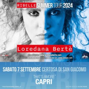 THAT’S AMORE CAPRI: “RIBELLE SUMMER TOUR 2024” Loredana Bertè, SABATO 7 SETTEMBRE CERTOSA DI SAN GIACOMO
