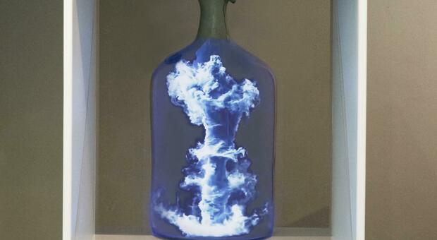 «The Tempest» è un video ologramma realizzato da Michelangelo Bastiani, composto da una bottiglia artigianale in vetro soffiato, al cui interno viene riprodotta una vorticosa e scenografica tempesta. L’artista mette al centro della sua indagine la maestà della natura e, grazie all’uso delle tecnologie più avanzate, rende l’immagine video, per sua natura bidimensionale, volumetrica e realistica. Il vetro è il tramite di cui si serve per mettere in comunicazione reale e virtuale: la tangibilità di un oggetto di uso comune e l’immaterialità del video. Giocando coi movimenti dell’acqua, Bastiani riesce a racchiudere l’ologramma in esatta proporzione alle forme della bottiglia, creando un singolare effetto ottico tale da farci percepire l’opera come un unicum. Un fenomeno percettivo spiegabile attraverso alcune leggi della Gestalt: buona forma, prossimità, buona continuità, destino comune. Il titolo è tratto dall’omonima piece teatrale scritta da William Shakespeare, ambientata su di un’isola imprecisata del Mediterraneo, che verrà messa in scena l’11 agosto alle ore 19 a Villa Lysis, in una adattamento speciale a cura della compagnia «Il Demiurgo». L’opera di Michelangelo Bastiani diverrà parte integrante dello spettacolo e sarà messa in comunicazione con gli attori e con ilpubblico. La video installazione resterà poi in mostra nella sala dell’oppio della storica dimora di Fersen fino all’11 settembre. Le opere di Michelangelo Bastiani sono installazioni video su grandi schermi, video proiezioni interattive e ologrammi, incentrate in particolare sugli elementi della natura e sullo stato della materia. Basandosi sulla teoria oleografica di Bohm secondo cui «il nostro universo è un ologramma gigantesco e splendidamente dettagliato», le opere di Bastiani riproducono un microcosmo in una bottiglia, dove i video, bidimensionali per natura, diventano realtà solide e dinamiche. Un processo futuristico dell’arte, che unisce multimedia e oggetti reali, dove l’opera d’arte diventa un luogo di animazione culturale interattiva. Al confine tra reale e virtuale, l’artista riproduce una dimensione in cui due realtà convivono, fino a crearne una terza. Un microcosmo perennemente in movimento e in comunicazione con lo spettatore, in cui natura e artificio coesistono, seguendo una ricerca artistica in cui l’unica costante sembra essere la trasformazione e l’evoluzione delle sue opere nel tempo.